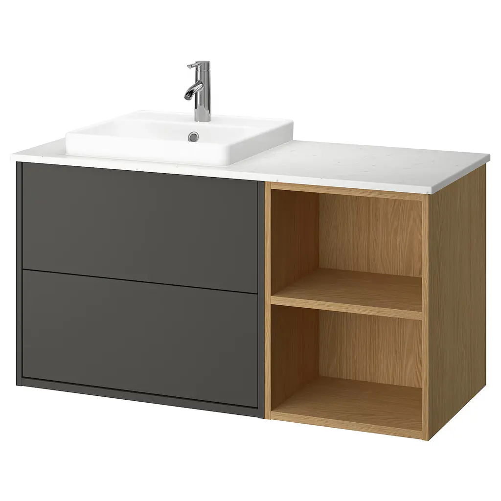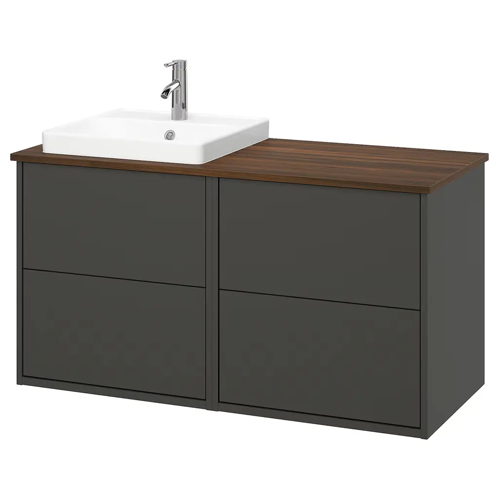 HAVBÄCK / ORRSJÖN Bathroom vanity wtih sink & faucet - dark gray/brown walnut effect 49x21 1/2x28 3/8 ". Depending on your space and needs, complete this solution with your choice of a mirror or mirror cabinet from our range, sold separately. This product bears the CE mark.