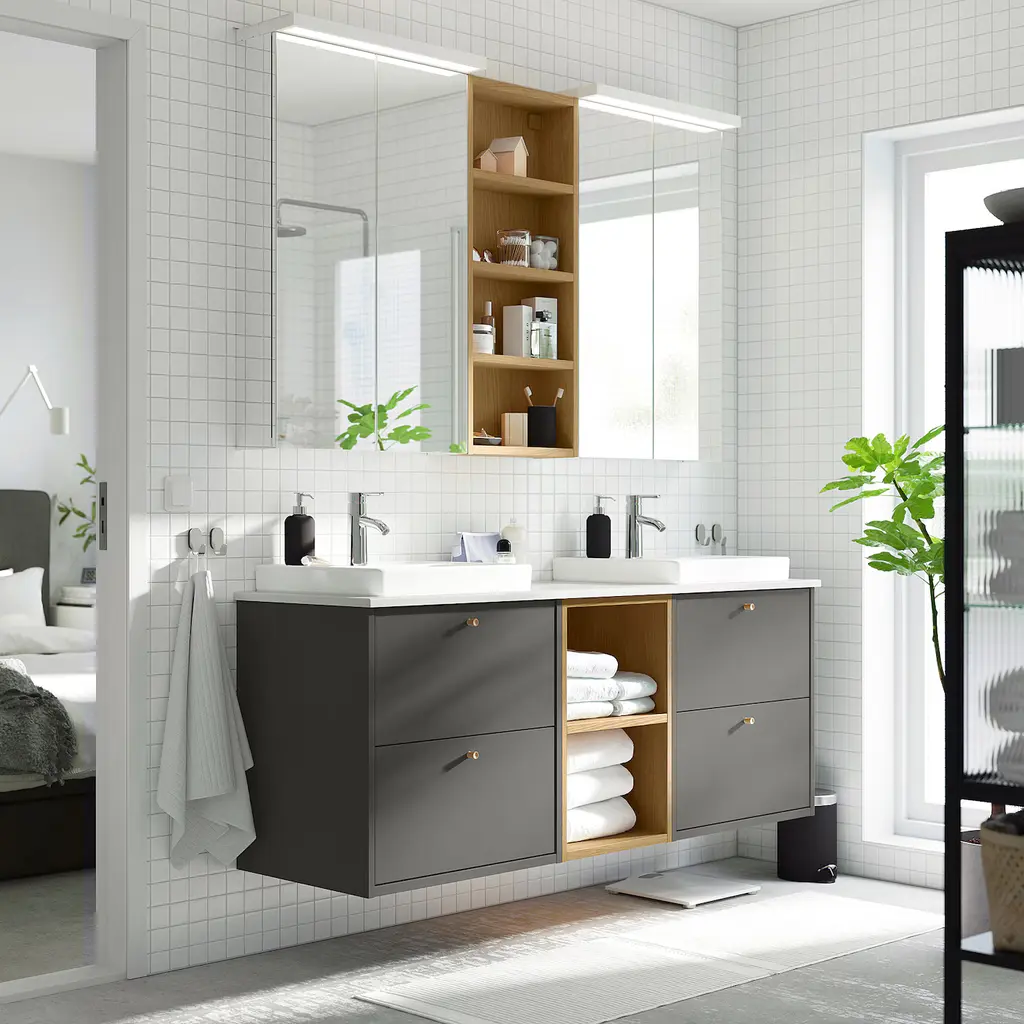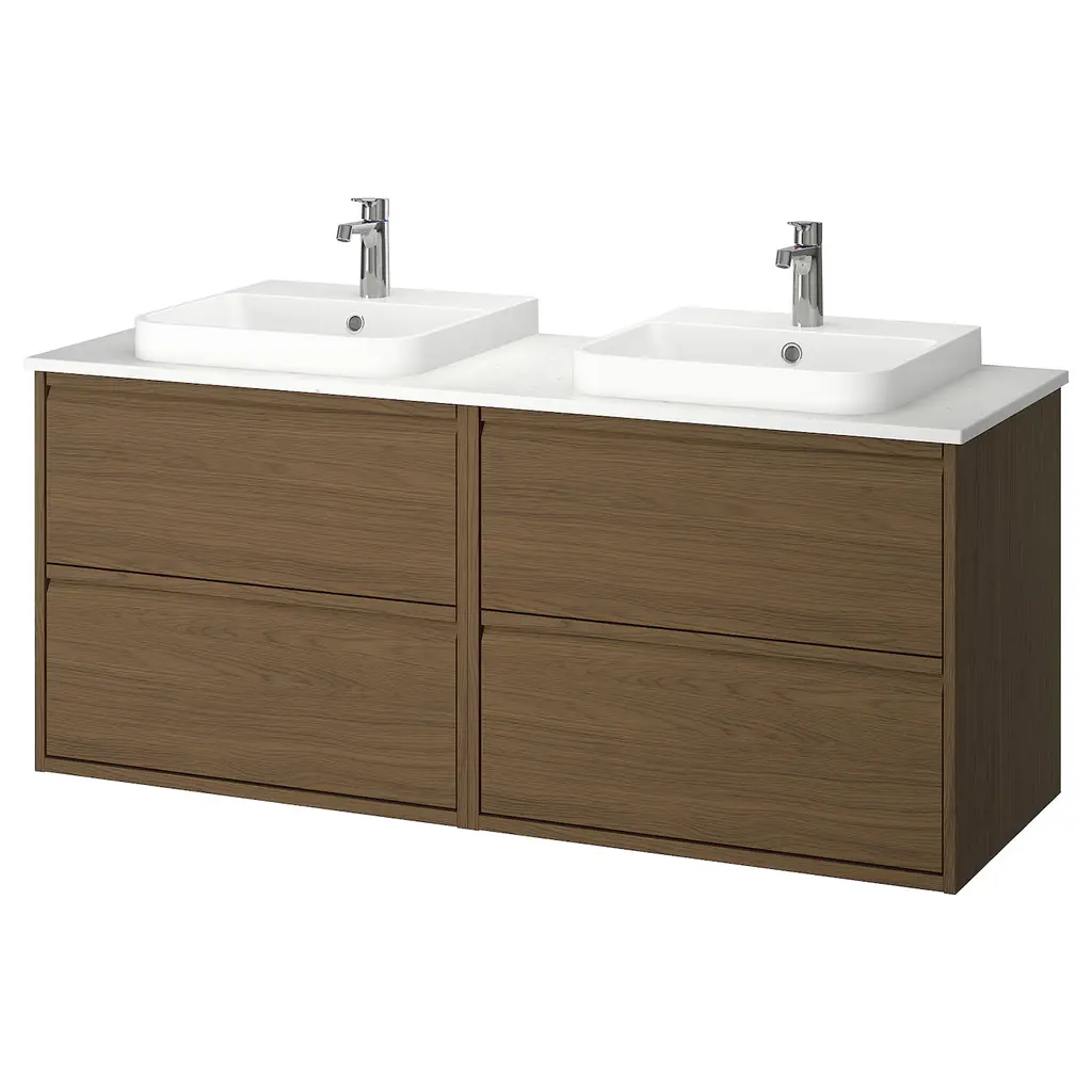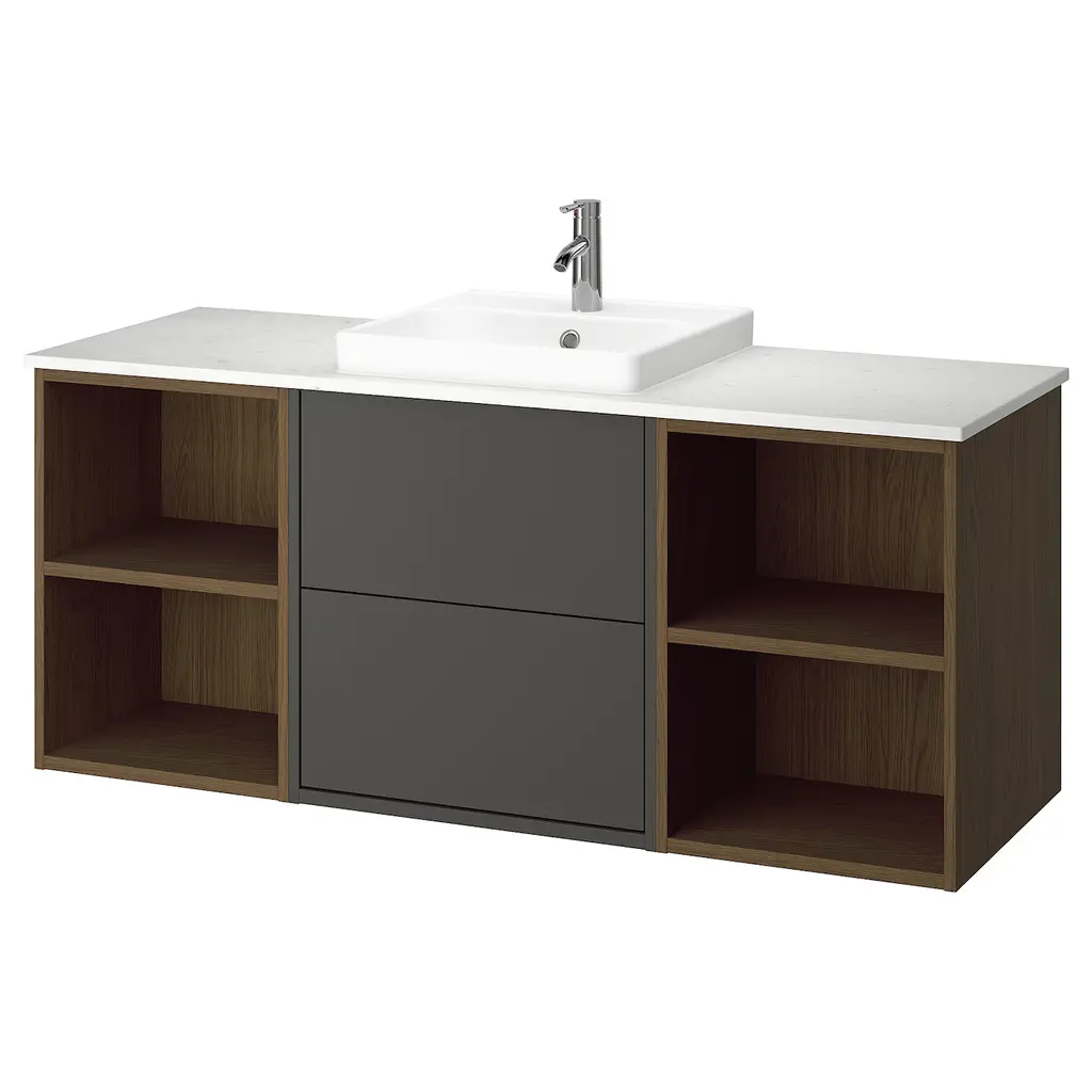 HAVBÄCK / ORRSJÖN Double vanity with sink & faucet - dark gray/oak effect/white marble effect 67x21 1/2x28 3/8 ". Depending on your space and needs, complete this solution with your choice of a mirror or mirror cabinet from our range, sold separately. This product bears the CE mark.