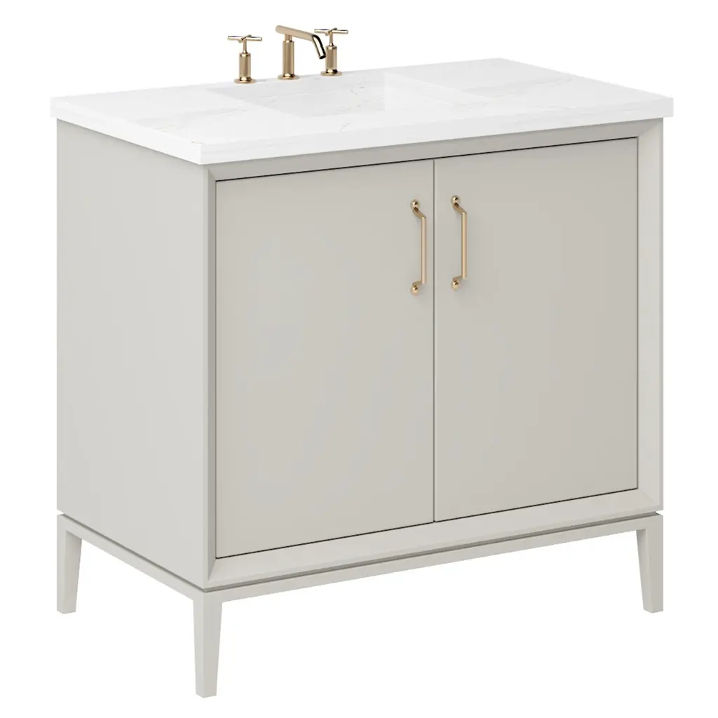 Introducing the Hawthorne Single Bathroom Vanity, a timeless piece that captures the essence of mid-century revival style. This freestanding vanity is a masterpiece of design, featuring an elegantly angled frame and gracefully tapered legs that evoke a sense of nostalgia and charm. The soft-close doors add a touch of modern sophistication, ensuring a seamless blend of classic and contemporary aesthetics. Available in a variety of exquisite finishes and sizes, the Hawthorne Vanity invites you to create a bathroom sanctuary that is uniquely yours. Let this enchanting piece transform your space into a haven of elegance and style.