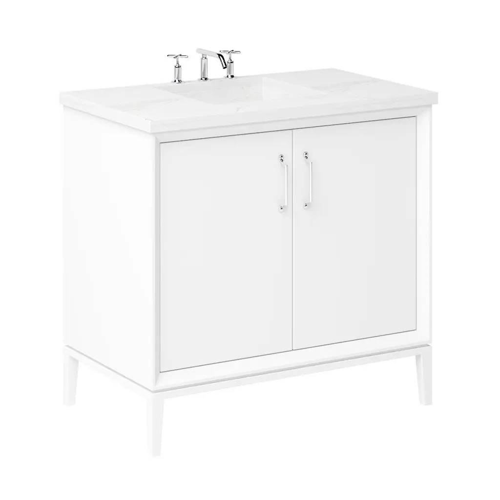 Introducing the Hawthorne Single Bathroom Vanity, a timeless piece that captures the essence of mid-century revival style. This freestanding vanity is a masterpiece of design, featuring an elegantly angled frame and gracefully tapered legs that evoke a sense of nostalgia and charm. The soft-close doors add a touch of modern sophistication, ensuring a seamless blend of classic and contemporary aesthetics. Available in a variety of exquisite finishes and sizes, the Hawthorne Vanity invites you to create a bathroom sanctuary that is uniquely yours. Let this enchanting piece transform your space into a haven of elegance and style.