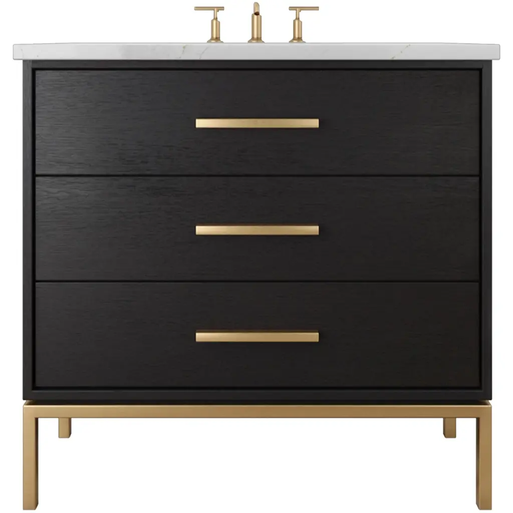 Embrace the timeless allure of the Hawthorne Three-Drawer Single Bathroom Vanity, where mid-century revival style meets modern elegance. This freestanding masterpiece is a testament to exquisite design, featuring an angled frame and gracefully tapered legs that exude sophistication. The vanity's false front and two u-shaped soft close drawers offer both charm and practicality, ensuring a seamless blend of form and function. Available in a variety of unique finishes and sizes, the Hawthorne vanity invites you to create a personal sanctuary that reflects your distinct taste. Let this captivating piece transform your bathroom into a haven of style and serenity.