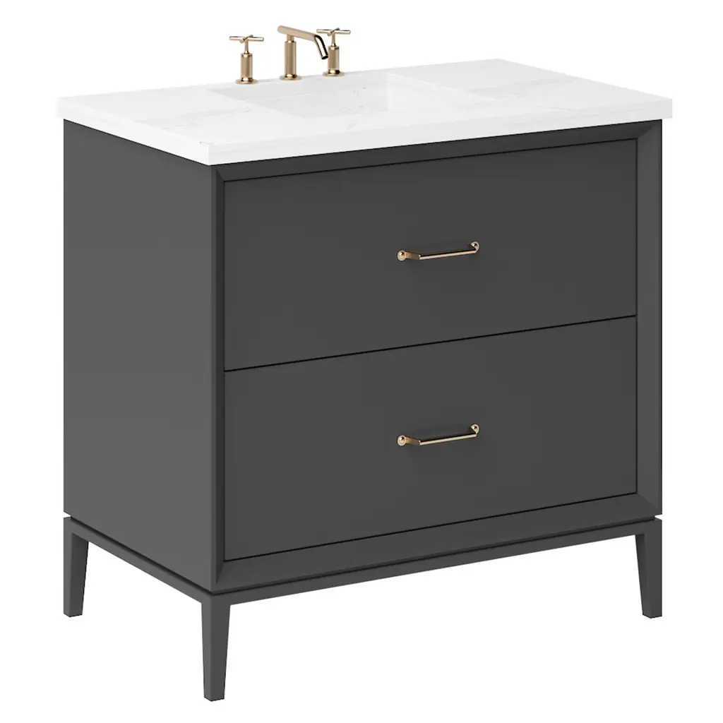 Embrace the timeless elegance of the Hawthorne Two-Drawer Single Bathroom Vanity, a masterpiece that captures the essence of mid-century revival style. This freestanding vanity is a testament to exquisite design, featuring an angled frame and gracefully tapered legs that evoke a sense of nostalgia and sophistication. The soft-close doors whisper luxury with every gentle touch, ensuring a serene and tranquil bathroom experience. Available in a variety of unique finishes and sizes, the Hawthorne vanity invites you to create a personalized oasis that reflects your individual taste and style. Let this enchanting piece transform your space into a haven of beauty and functionality, where every detail is crafted to perfection.