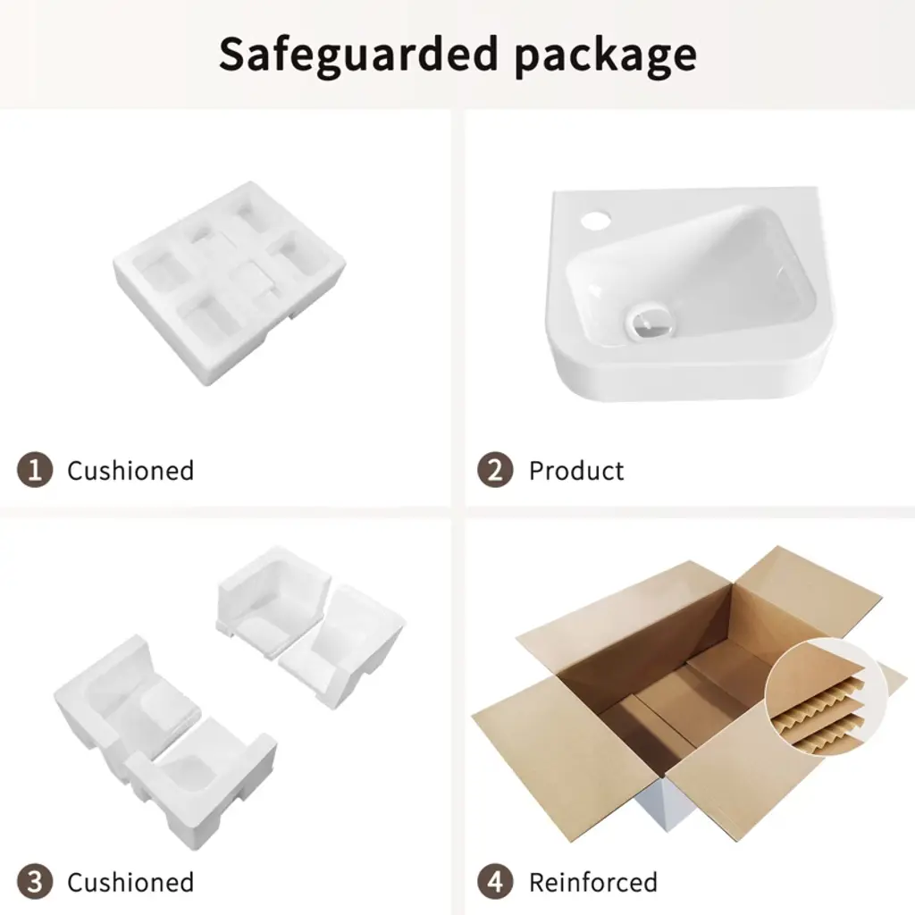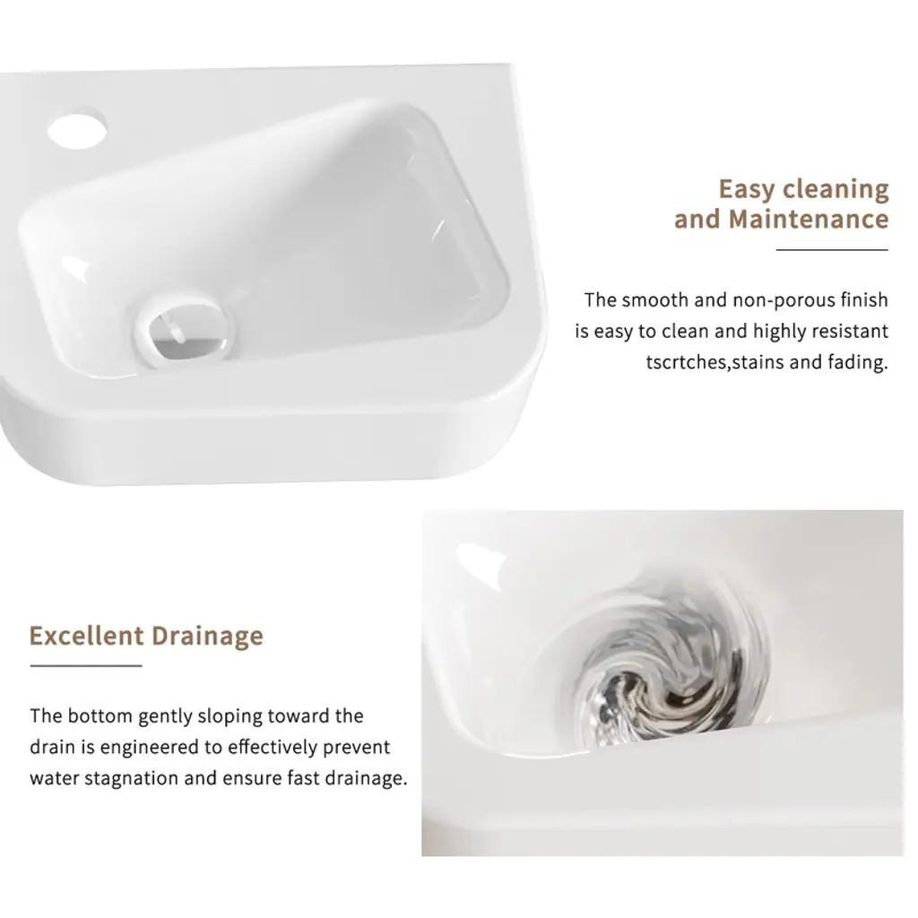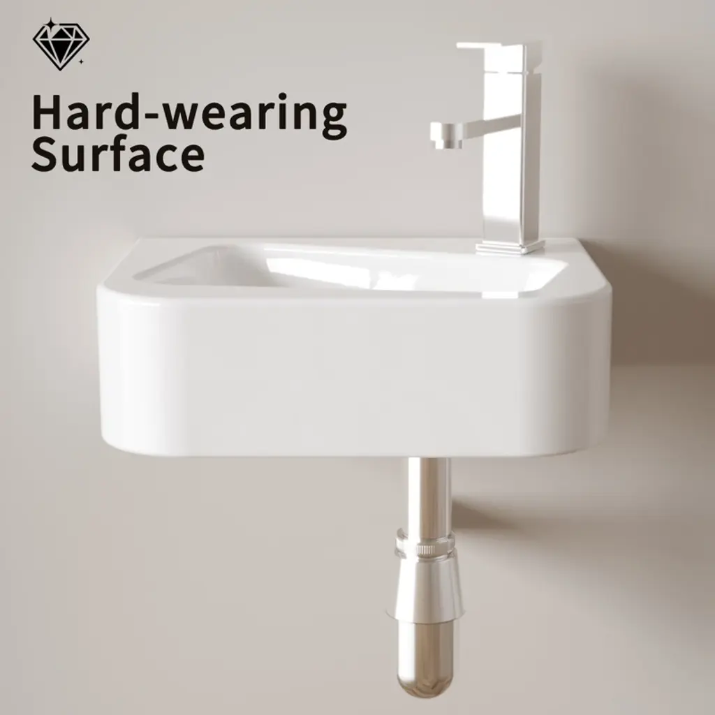 Versatile Wall Mount Sink : Kichae Beautiful & fancy white sinks are designed and welcomed for any locations, like home bathroom, restaurant, school, indoor or outdoor. Gives an amazing and gorgeous look.Easy to Clean : Interior and exterior smooth, non-porous glaze makes this white bathroom vessel sink more silky and protect the sink surface against stains, making it easy to clean. Constructed with super sturdy and durable with long-lasting & high density ceramic material, our sink can keep new even after many years of using.