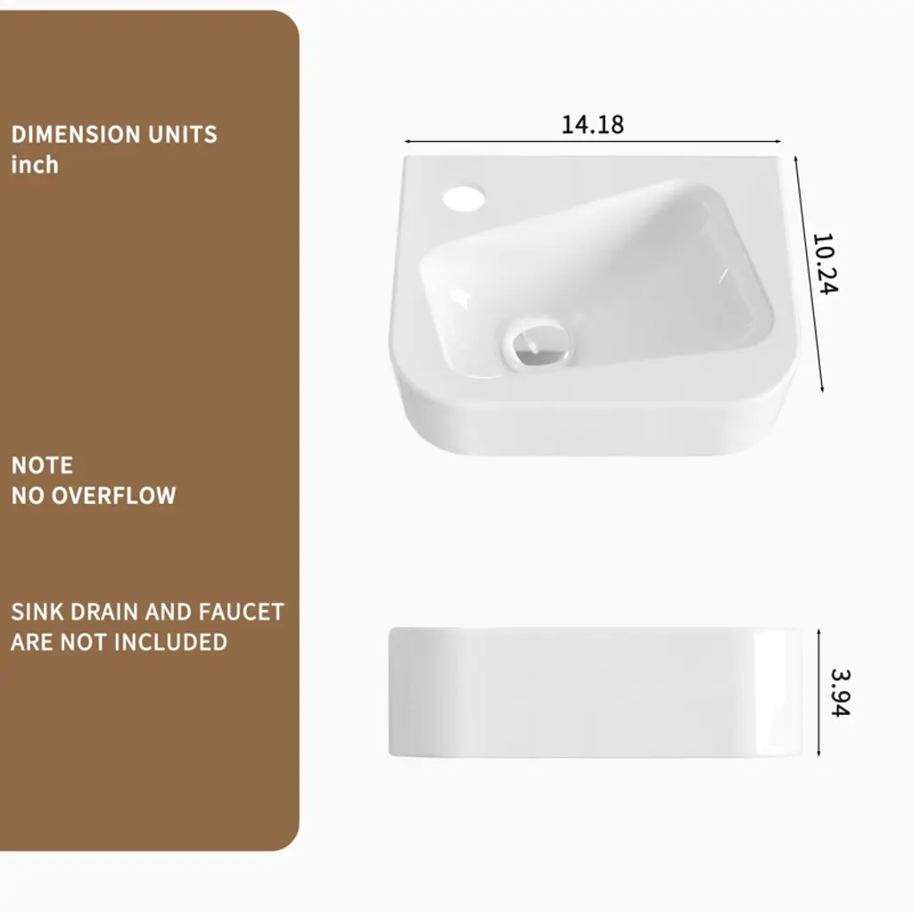 Hrinhom 14.2"w Floating Rectangle Bathroom Vanity Sink,modern Ceramic Wash Basin Without Faucet