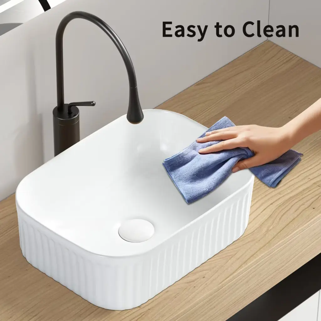 This vanity sink is designed without a faucet, giving you the freedom to choose a faucet that best matches your personal taste and the overall decor of your bathroom. Whether you prefer a minimalist, industrial, or traditional look, the Hrinhom Bathroom Vanity Sink provides a versatile base to build your ideal bathroom setup.