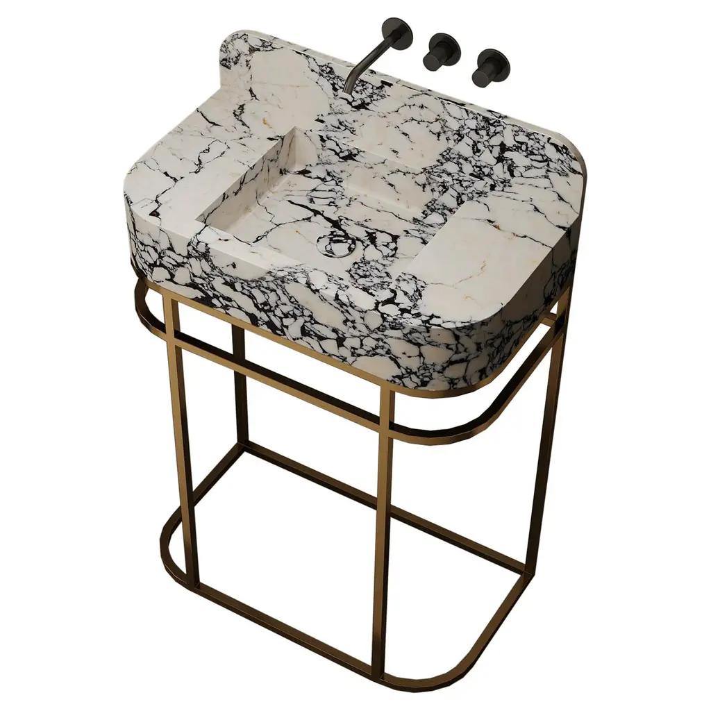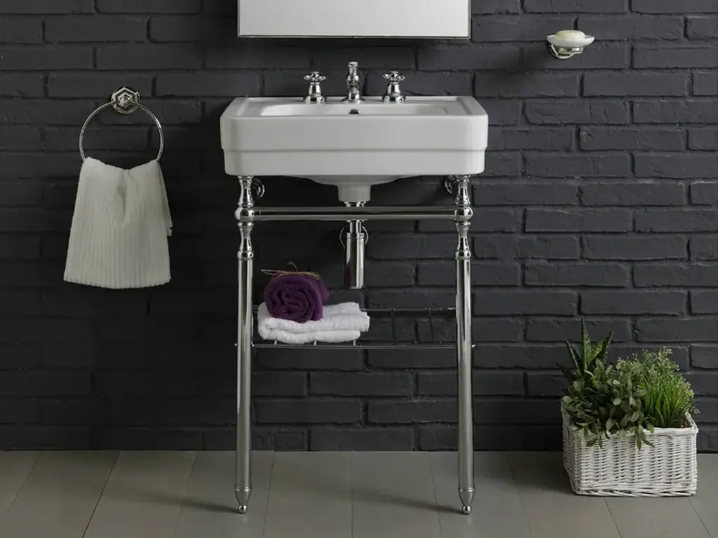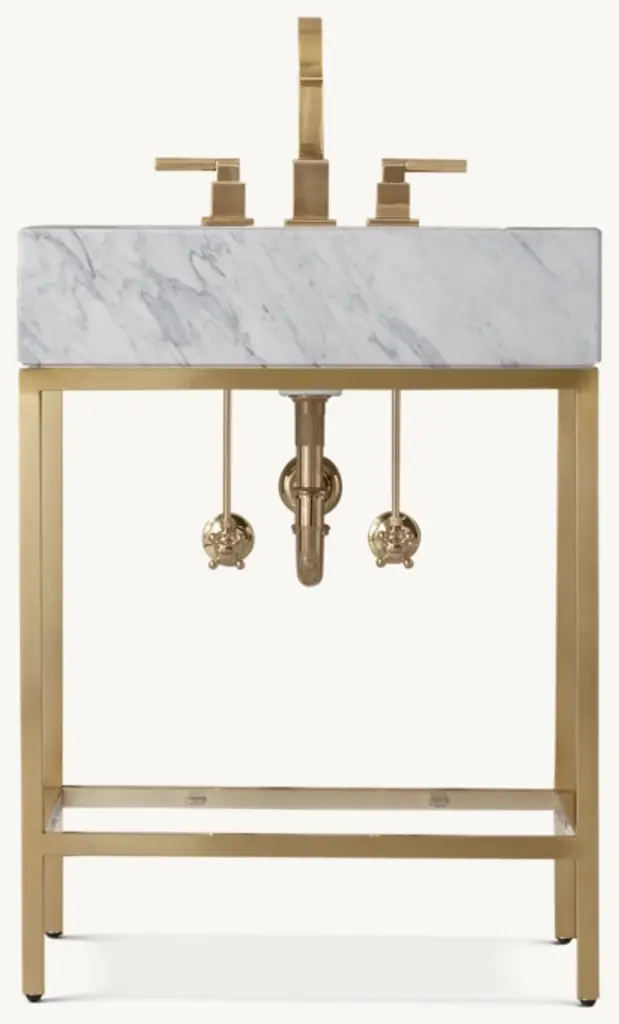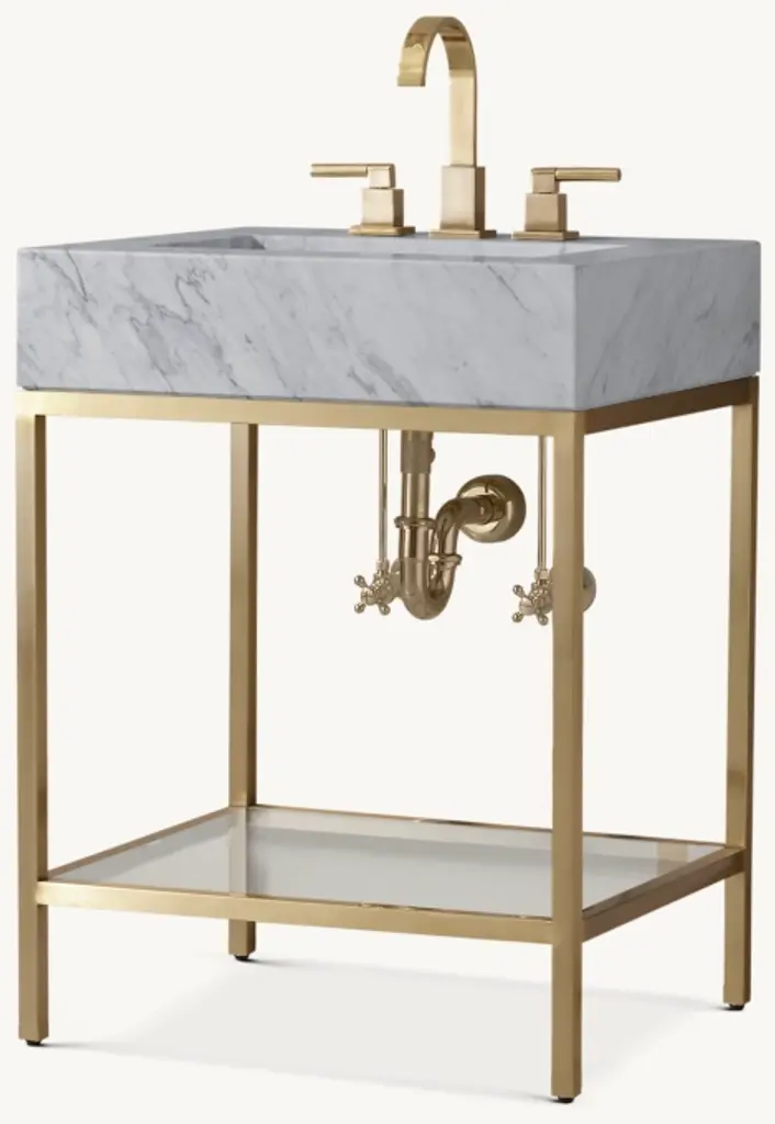 We looked to the last century to inform our collection's aesthetic, creating an open-back sink and matching storage with the minimalist lines of the 1950s.