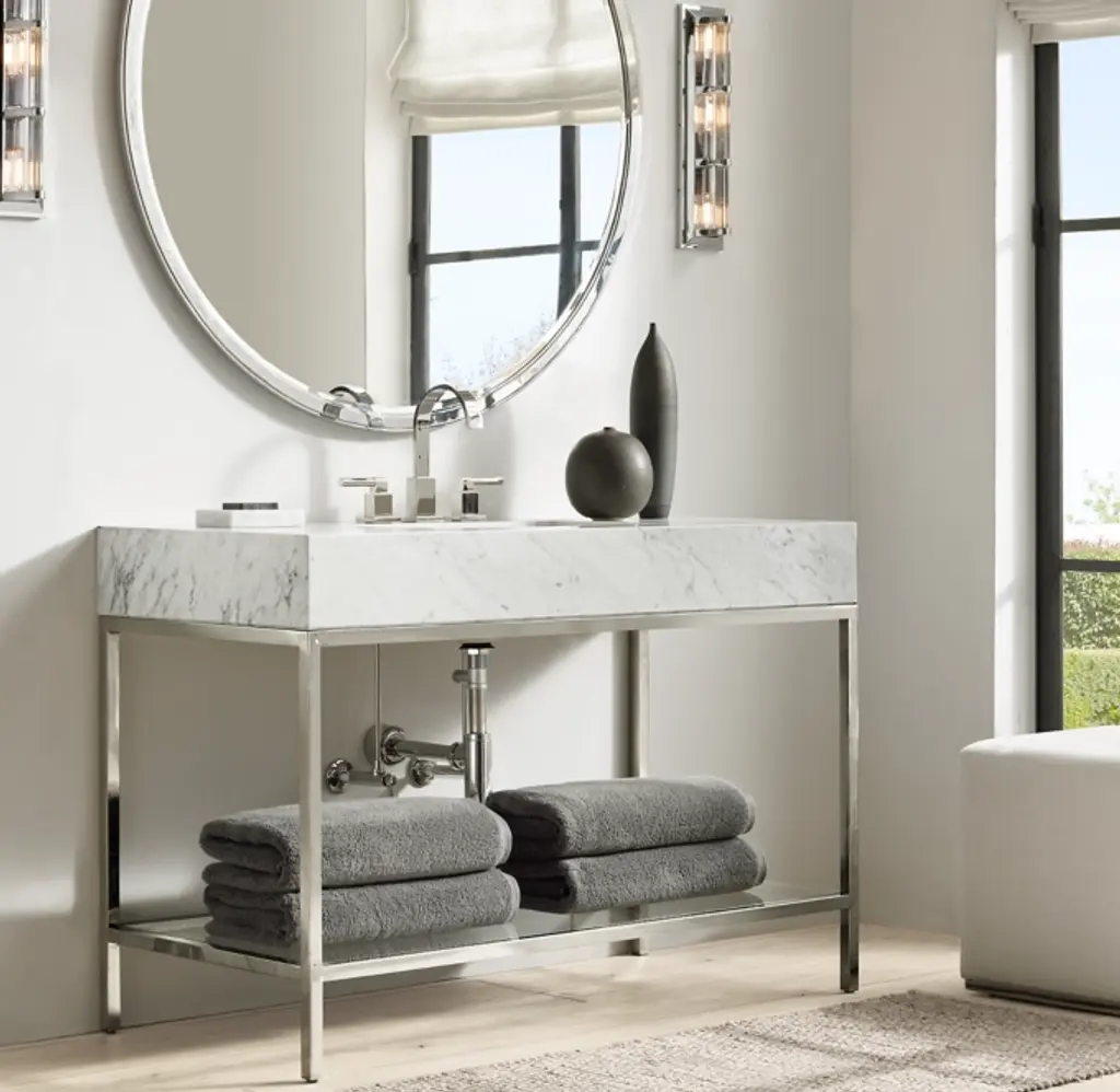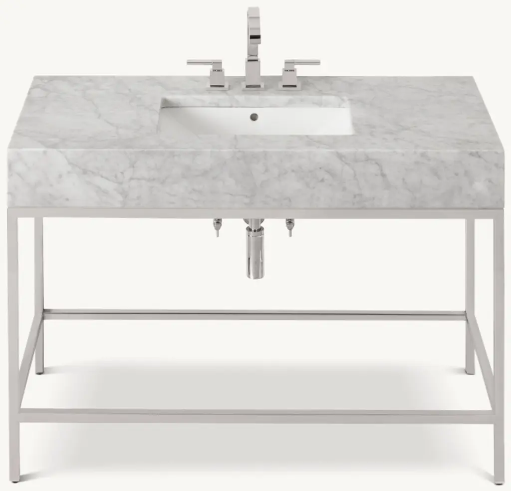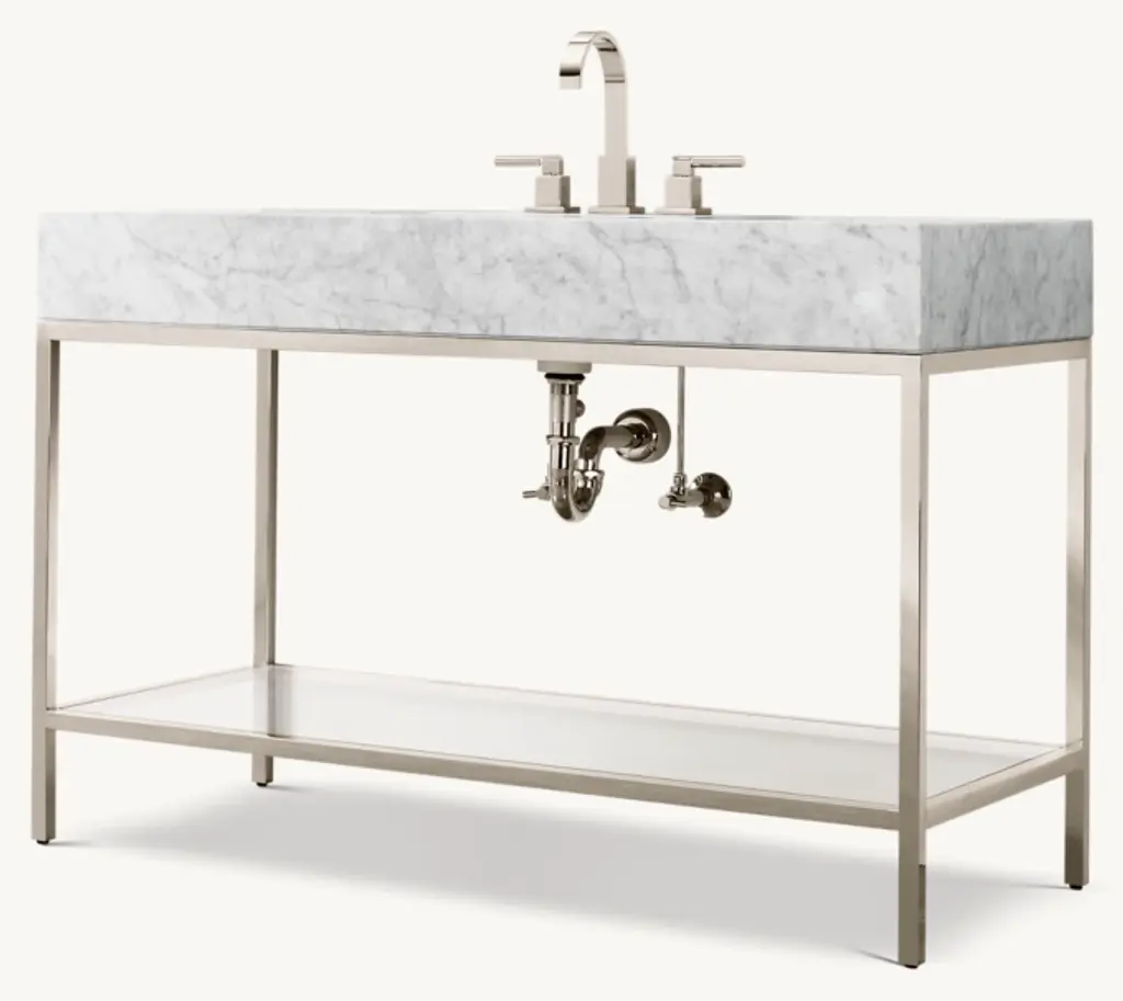 We looked to the last century to inform our collection's aesthetic, creating an open-back sink and matching storage with the minimalist lines of the 1950s.
