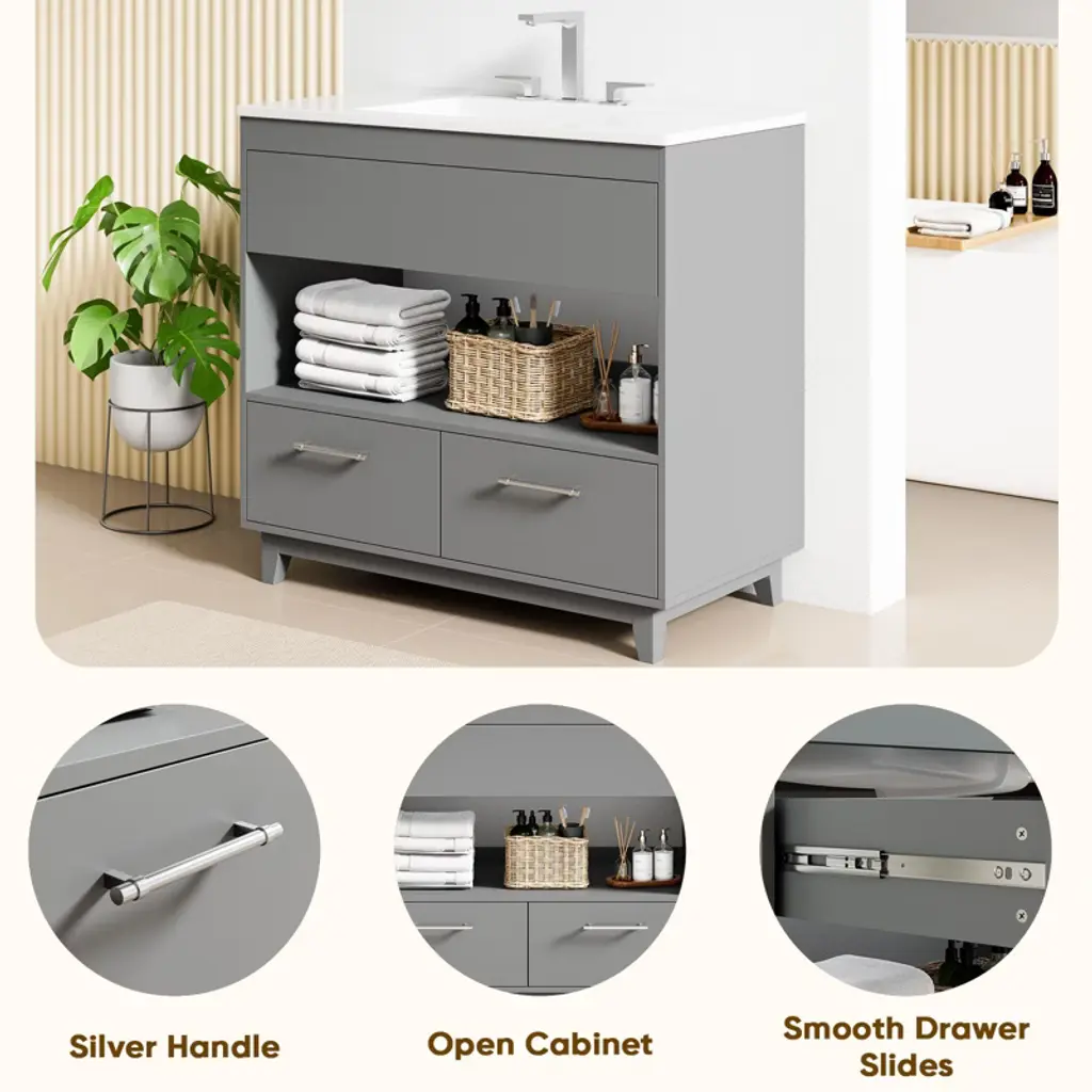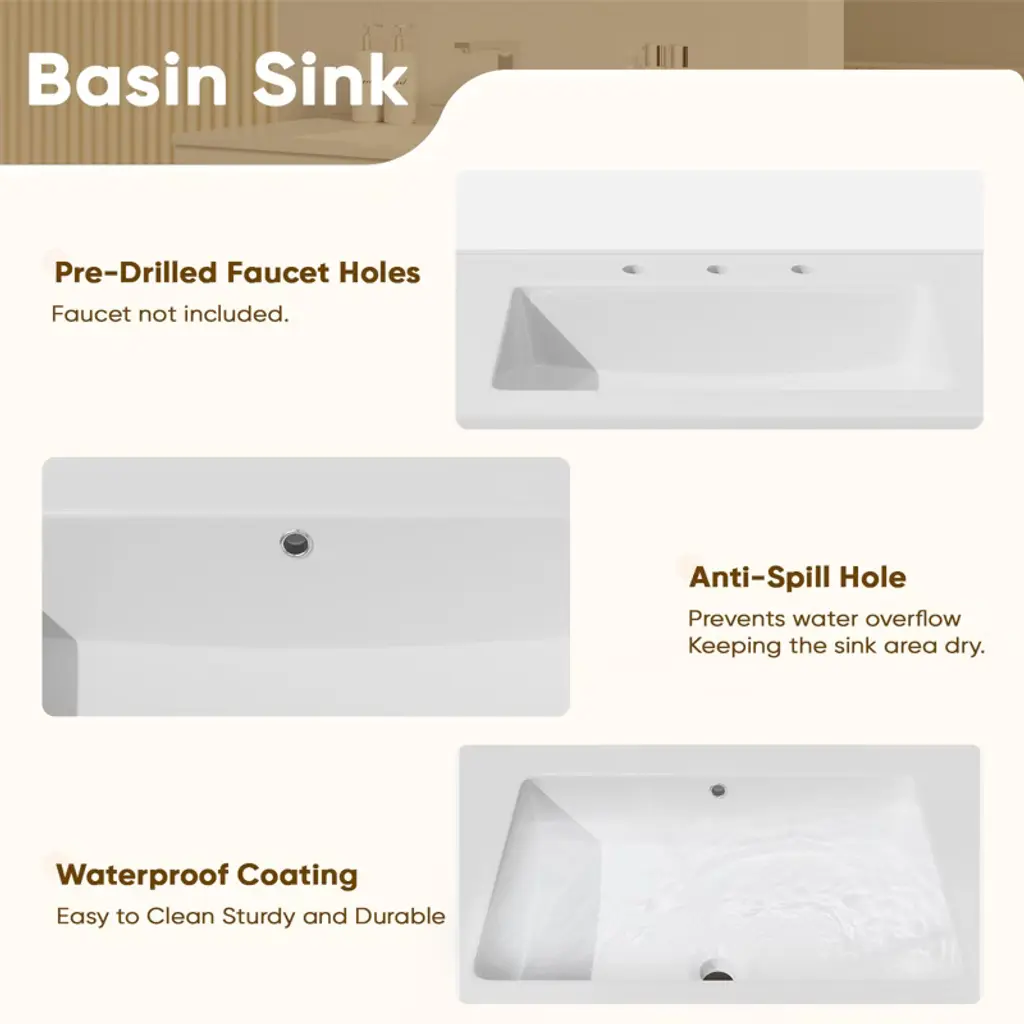 Hyleory Contemporary Bathroom Vanity With Integrated Sink – Faucet Not Included