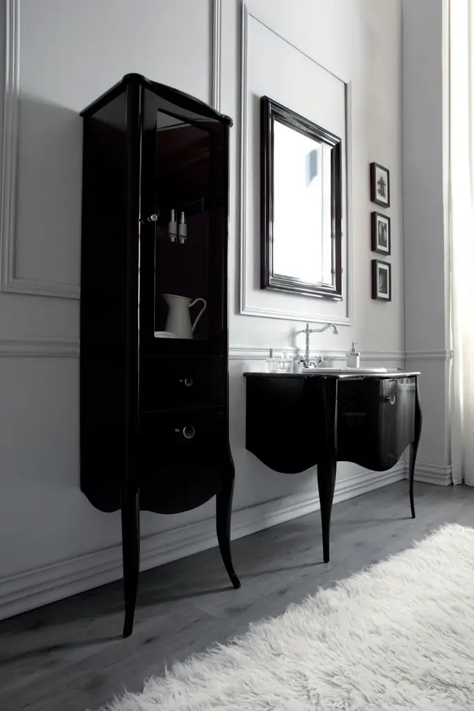 IMPERO is an oak furniture with drawer for console basin. available in 2 sizes. Wash basin not included.Olympia Ceramica created “Impero Style”, a concept that responds to the request of timeless classic shapes, combined with modern values of functionality and elegance.The perfect harmony among ceramics, metals and wood allows to create different compositions made with different materials, that can be adapted to any demands, always keeping Class, Elegance and Luxury as main features. Details for a luxury and timeless Bathroom.