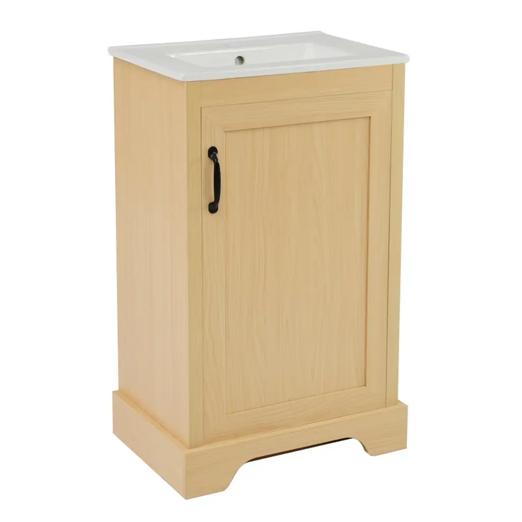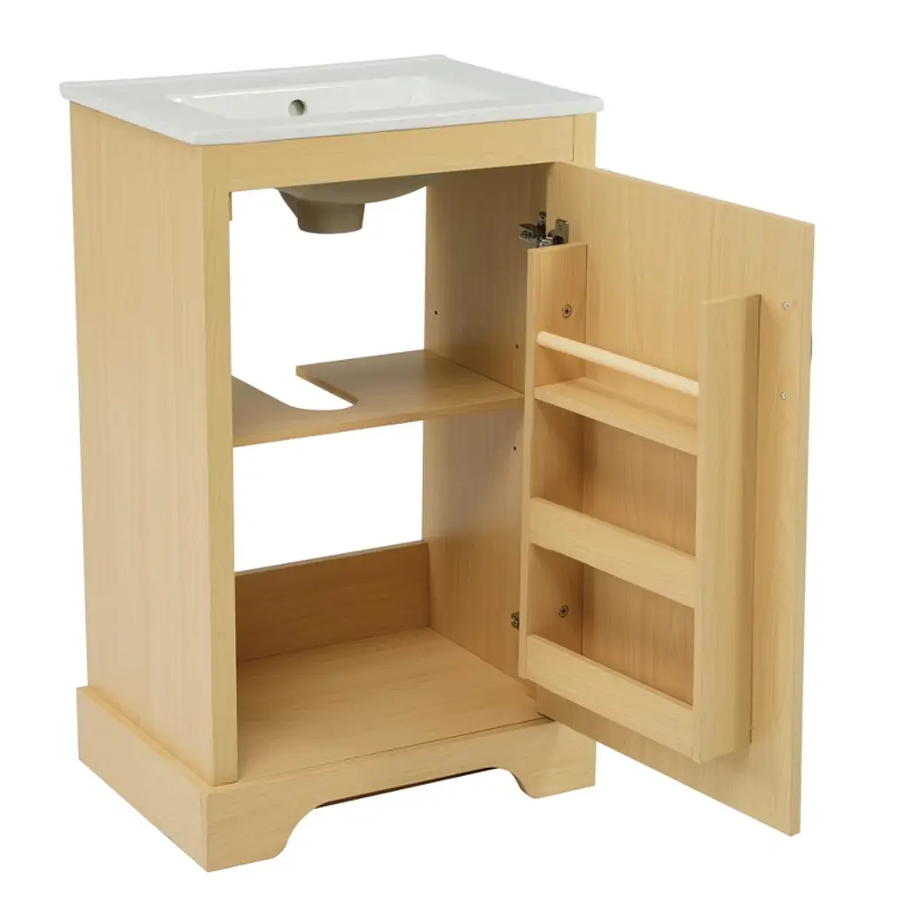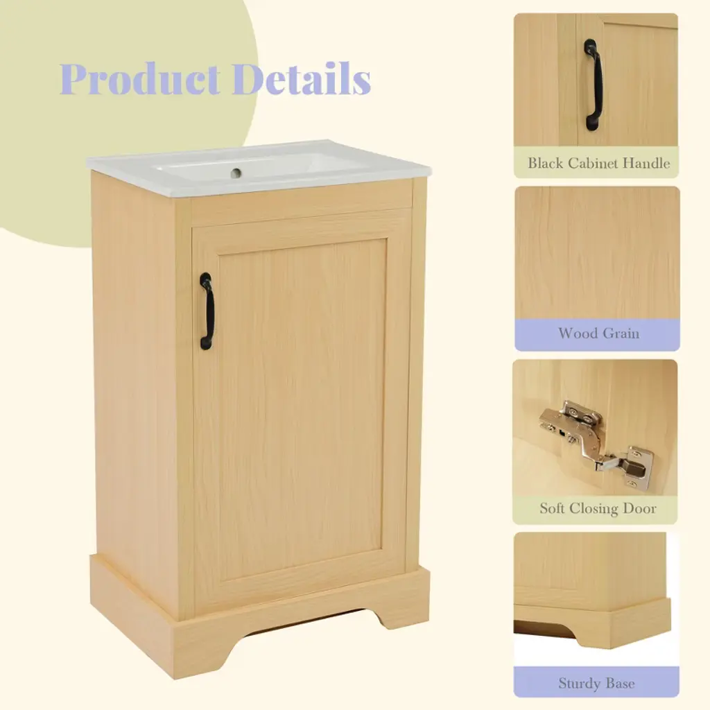 Ktmbdw 20" Modern Bathroom Vanity With Ceramic Basin, Undermount Sink Cabinet With Doors, Free Standing Storage Cabinet With Sink Combo Set, Natural