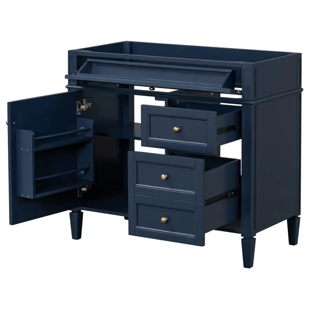 Ktmbdw 36'' Bathroom Vanity Without Sink, Freestanding Bathroom Storage Vanity Cabinet 2 Drawers And A Tip-out Drawer, Solid Wood Frame, Blue