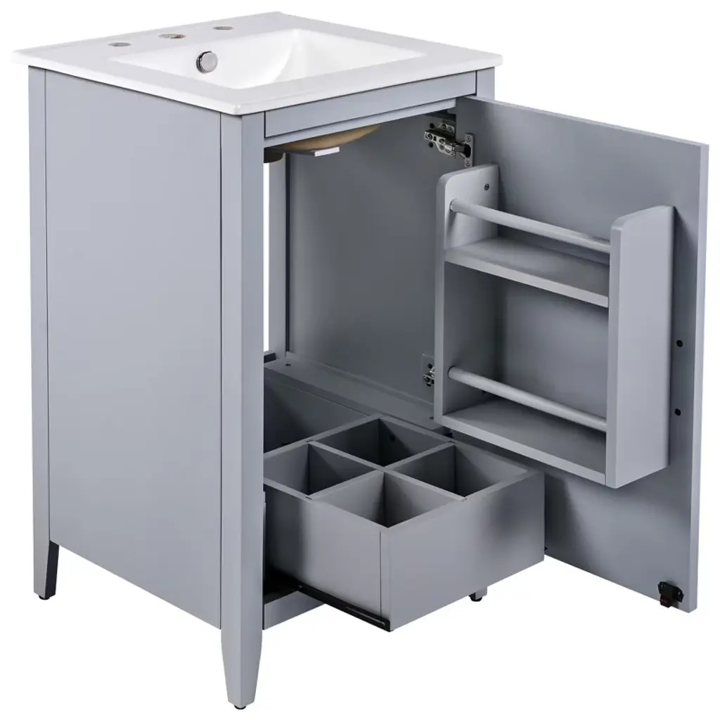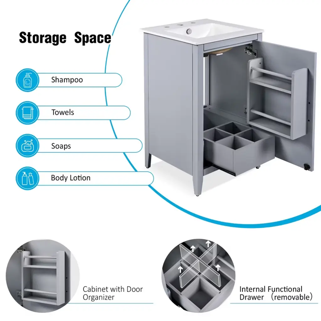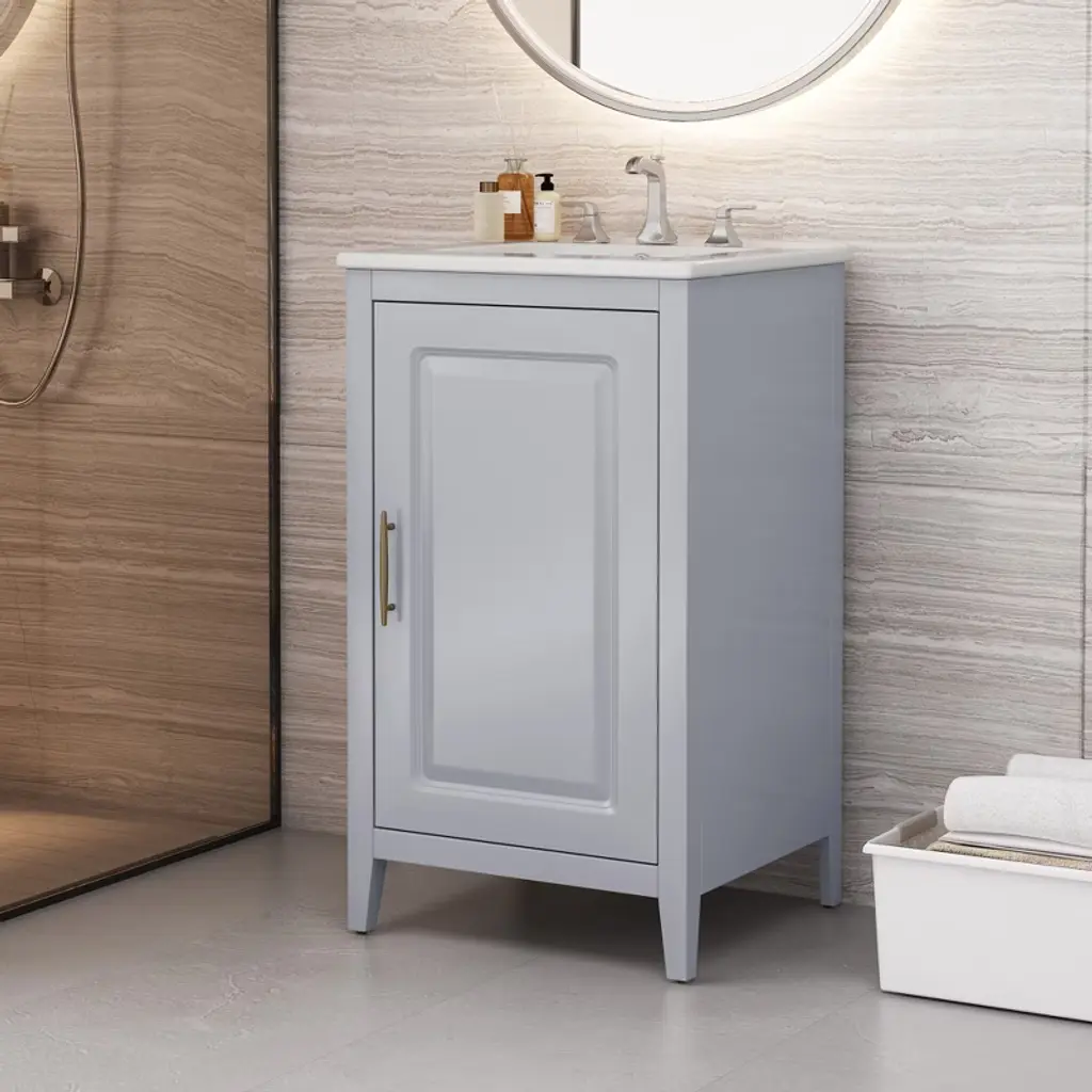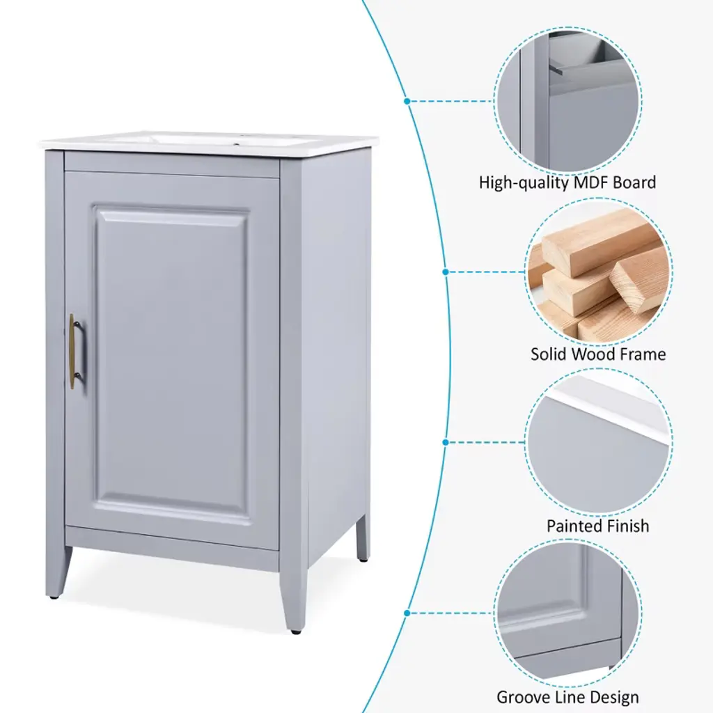 Kwpzqeb 20.3" Bathroom Vanity With Sink, Freestanding Storage Bathroom Vanity With 1 Soft Closing Cabinet, Bathroom Cabinet For Small Space, Gray