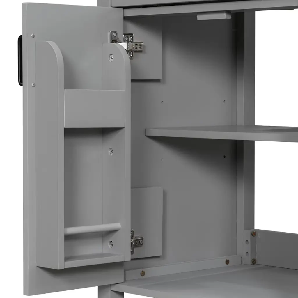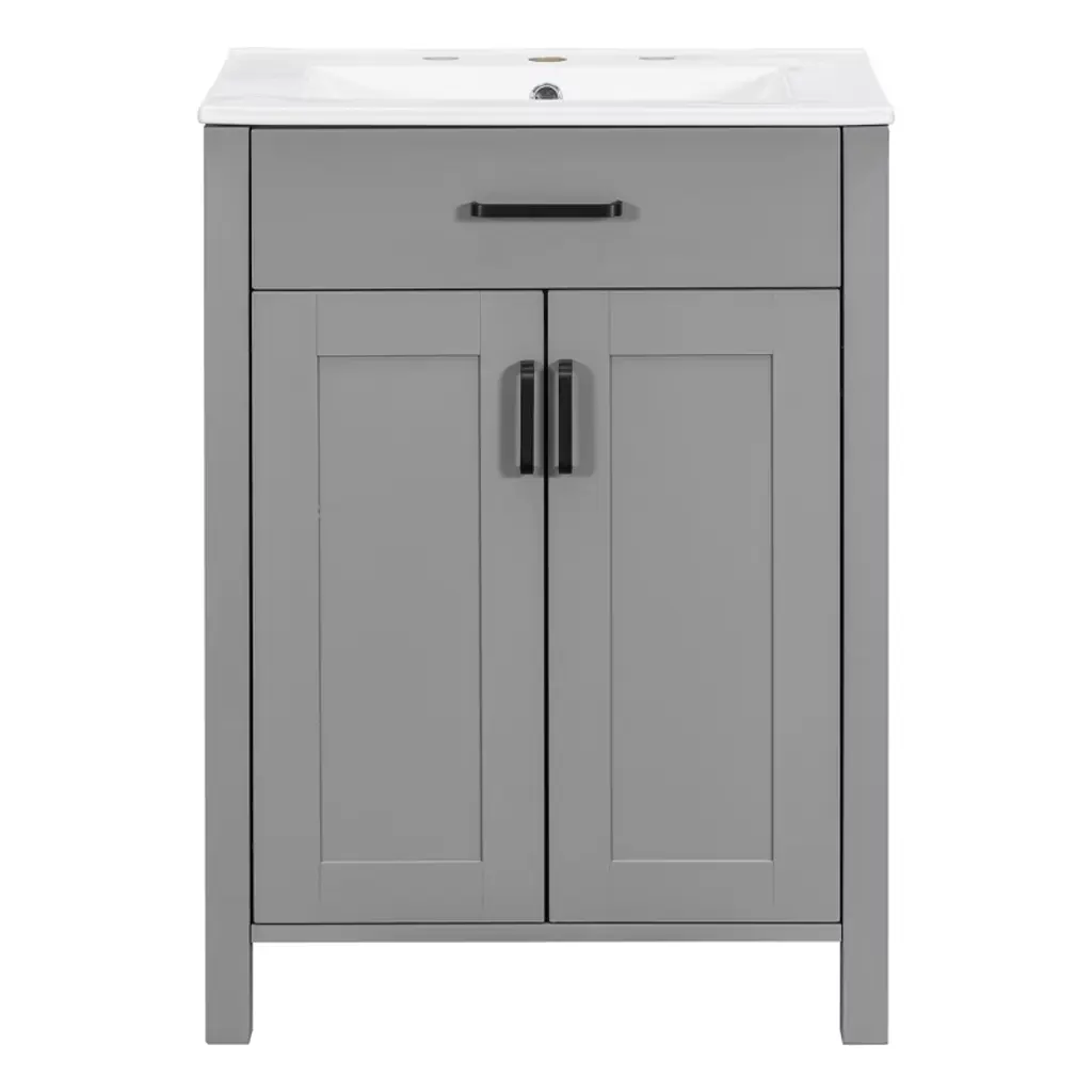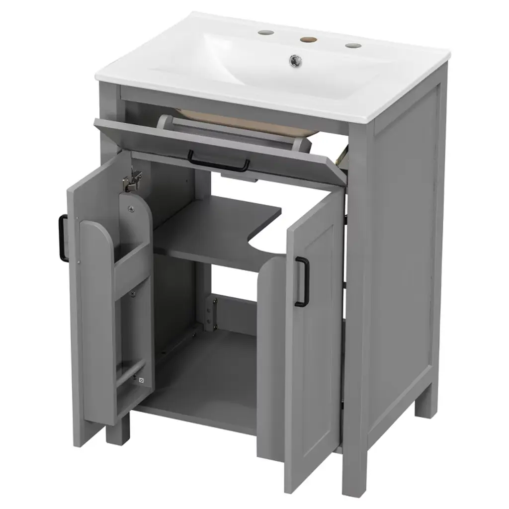 Kwpzqeb 24" Bathroom Vanity Combo With Ceramic Sink, Modern Vanity With Dual-tier Shelving & Flip Drawer, Freestanding Bathroom Cabinet, Gray