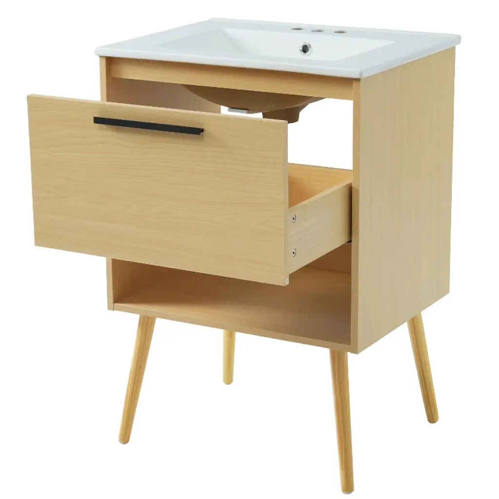 Kwpzqeb 24" Bathroom Vanity With Ceramic Sink Combo, Bathroom Sink Cabinet With Drawer And Open Storage, Bathroom Cabinet Vanity For Small Space