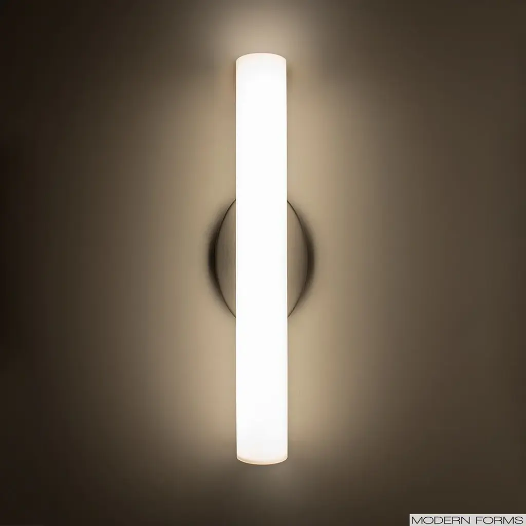 Mouth-blown etched opal glass and clean contours define this collection of vanities and wall sconces, perfect for bathrooms, hallways and anywhere you need a strikingly simple dose of glare-free, energy-efficient light. Aluminum hardware with an mouth-blown opal glass diffuser. CEC Title 24 and ADA Compliant. Can be mounted vertically or horizontally. Matching wall sconce with bathroom vanity light. Available in a variety of sizes and finish options. AC LED technology - no driver or transformer required. Easily fits on a pancake junction box. 277V, 240V, or custom CCT options available by special order. Smooth and continuous dimming with an electronic low voltage (ELV) dimmer. High Powered Replaceable LED Module CRI: 90, Rated Hours: 80,000, Color Temp: 2700K, 3000K, and 3500K. Standards: ETL & cETL listed for damp locations. ETL CertifiedNo UL CertificationLighting Location: DampLighting SpecificationsWattage: 17Number of Bulbs: 1Bulb type: LED ModuleBulbs includedHardwire