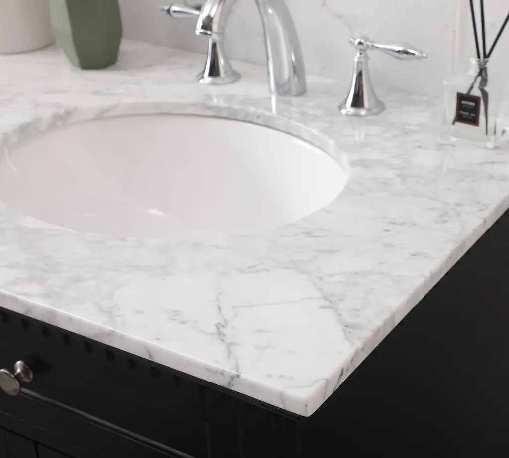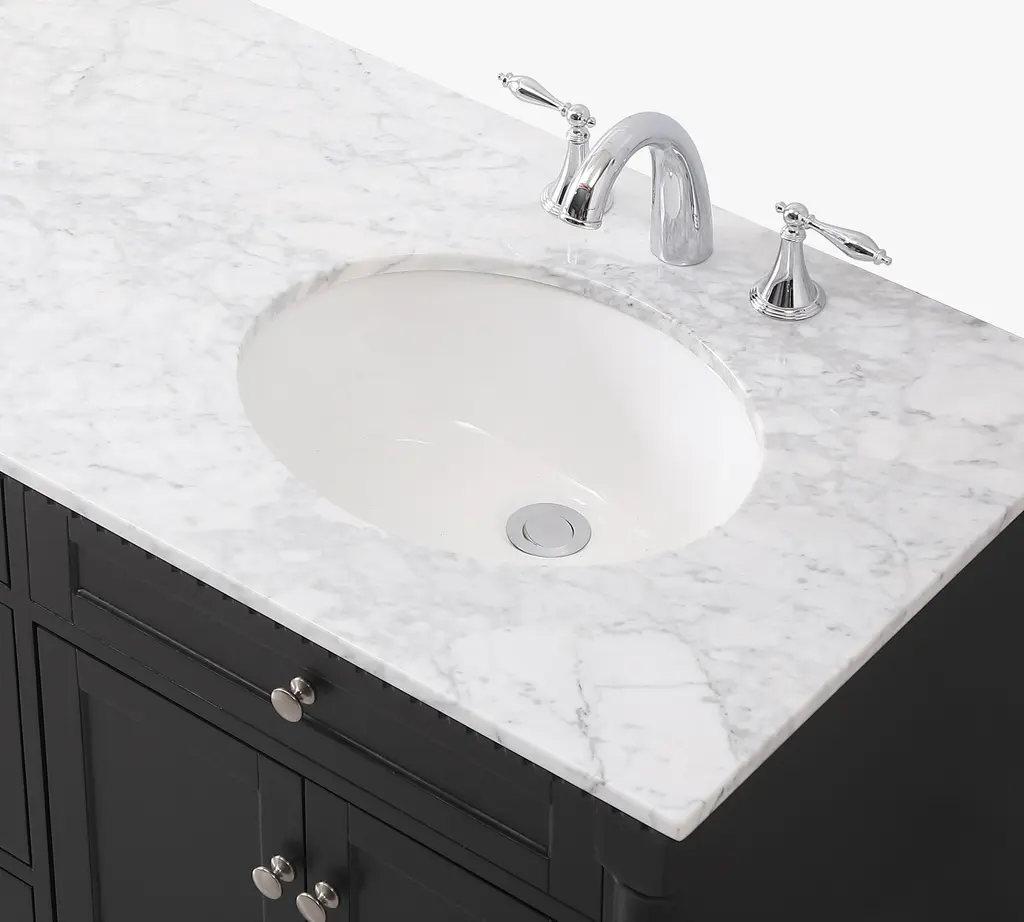 An elevated classic from top to bottom. The Carrara marble adds a touch of sophistication to this vanity, showcasing beautiful woodworking details down to its pedestal feet. It balances enduring style and practical design – the perfect combo for a bath.