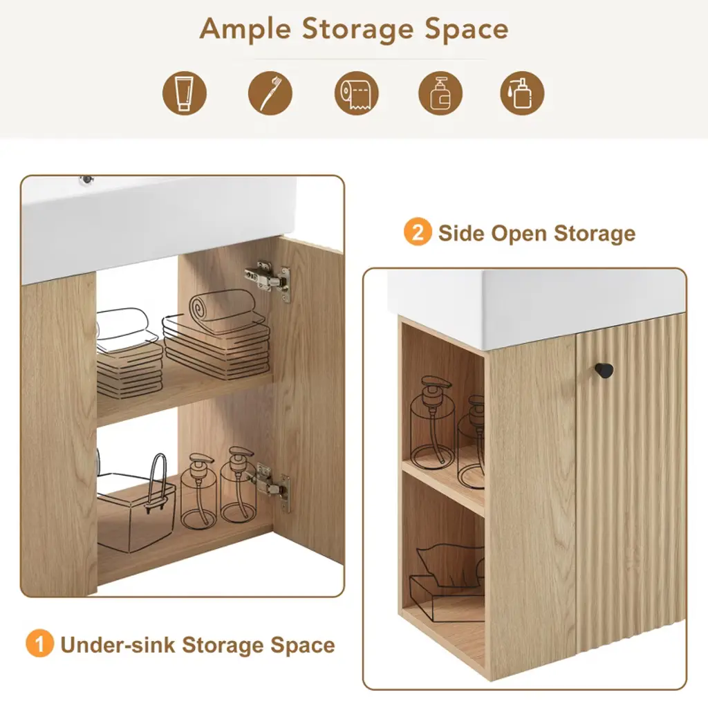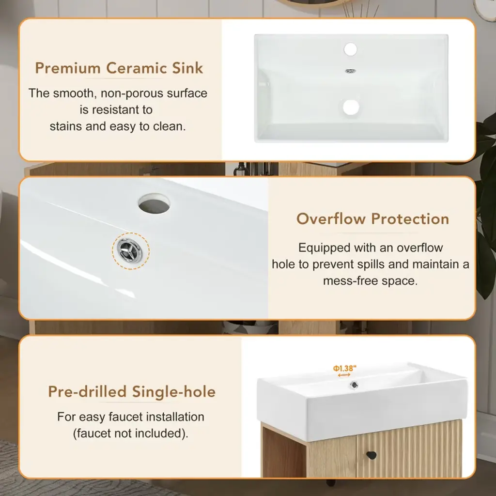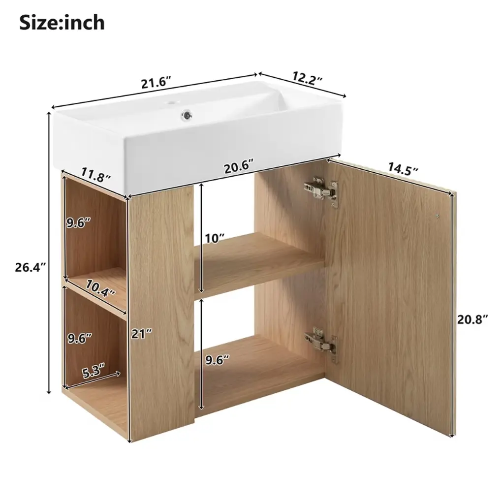 Lovson 21.6''modern Floating Bathroom Vanity With Ceramic Basin - Perfect For Small Bathrooms, Left Side Storage