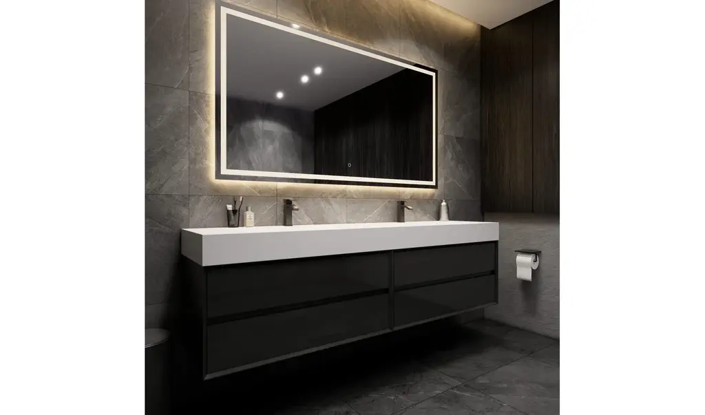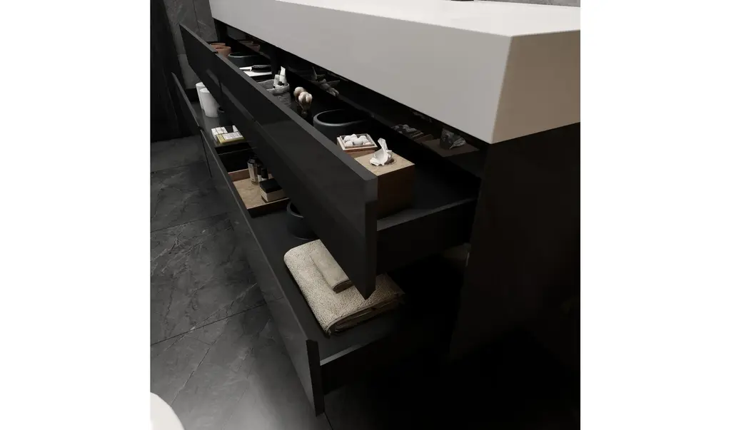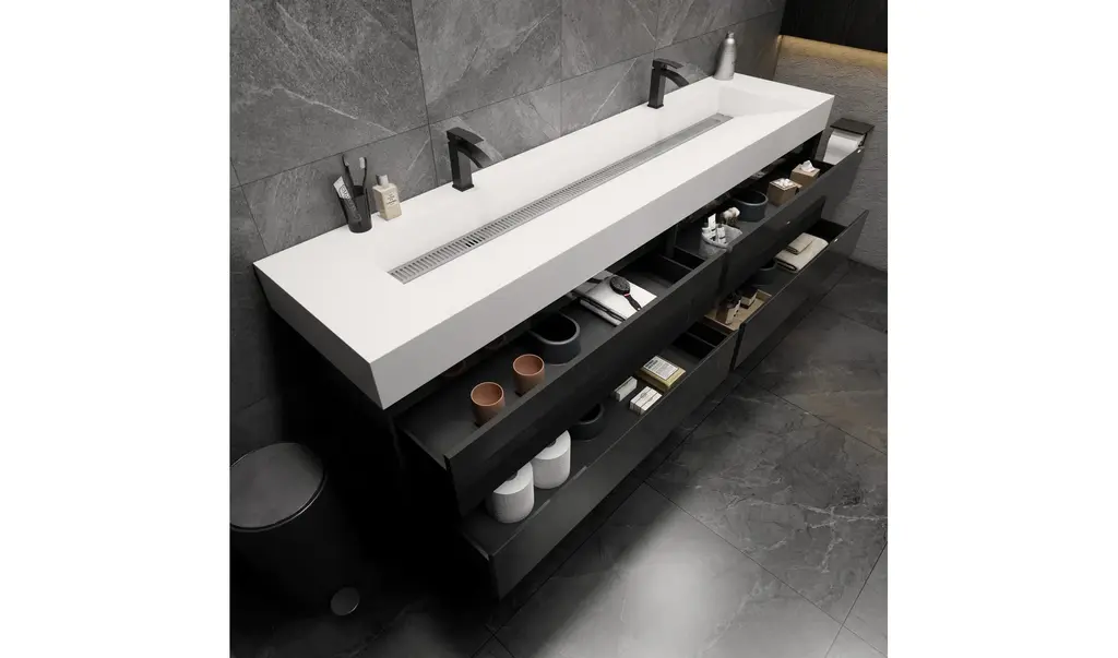 84" W x 19.80" D x 24.25" H4 drawersNanomaterials cabinetSingle acrylic under-mount sinkCultivated, contemporary designFully assembled for easy installationScratch, stain, and bacteria-resistant surfaceIntegrated European soft-closing hardwareMulti-stage finish to ensure durability and qualityOne Year Limited Warranty