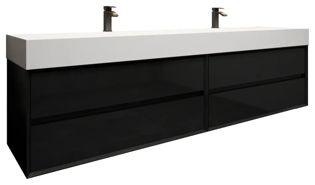 Max 84" Double Floating Bath Vanity With Acrylic Sink, Coffee Wood, Gloss Black