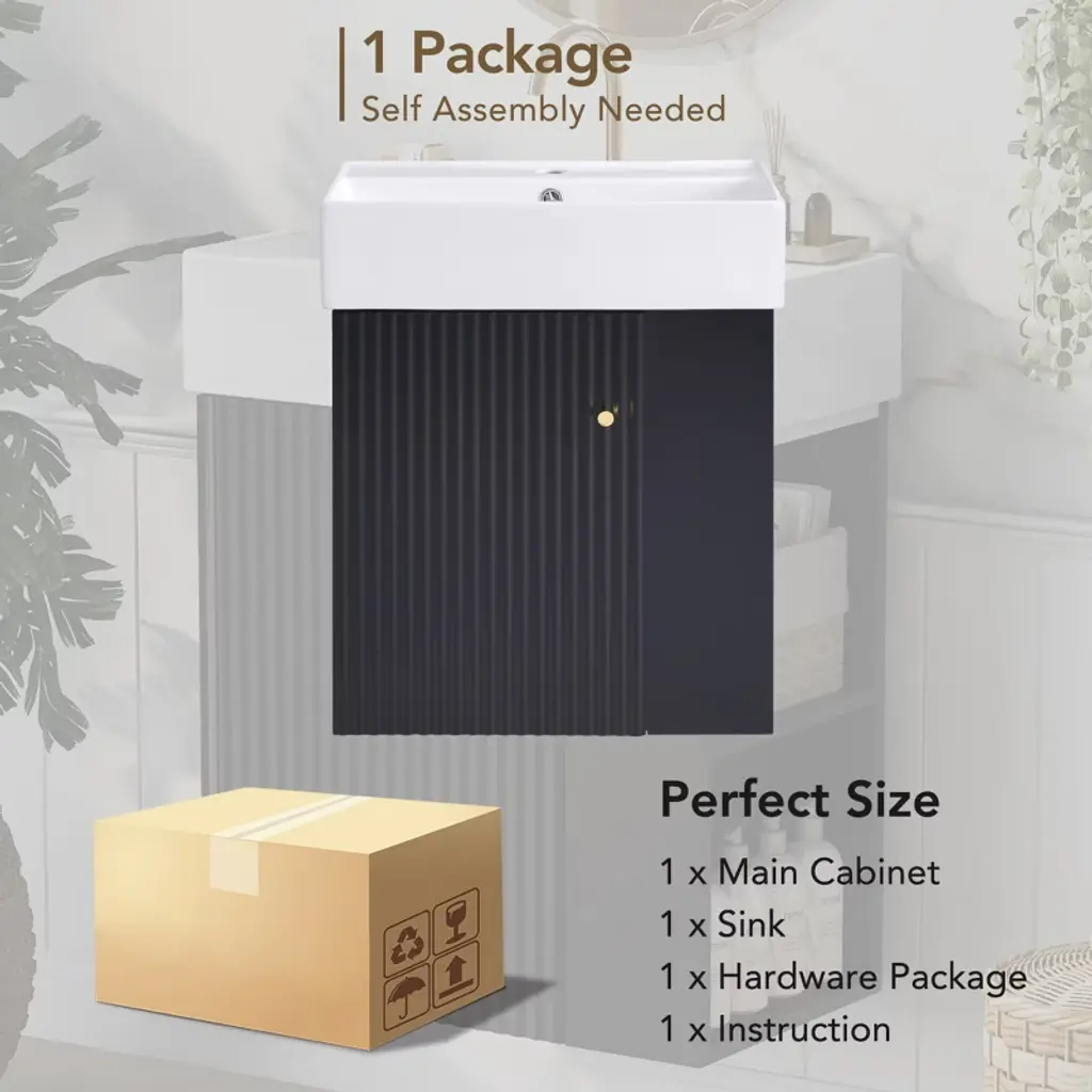 Elevate your bathroom with this floating vanity that blends modern style and smart design. Featuring a wave-textured door and a rose gold handle, it brings a sleek, contemporary vibe to any space. The floating design is perfect for small bathrooms, powder rooms, or urban dwellings where space optimization is key ¡ª it frees up floor area to make your bathroom feel more open and airy. Crafted with a smooth ceramic basin, it suits both daily practical use and stylish settings, adding a touch of sophistication to bathrooms that crave a mix of fashion and functional space utilization.