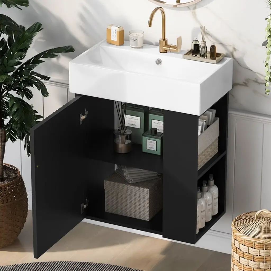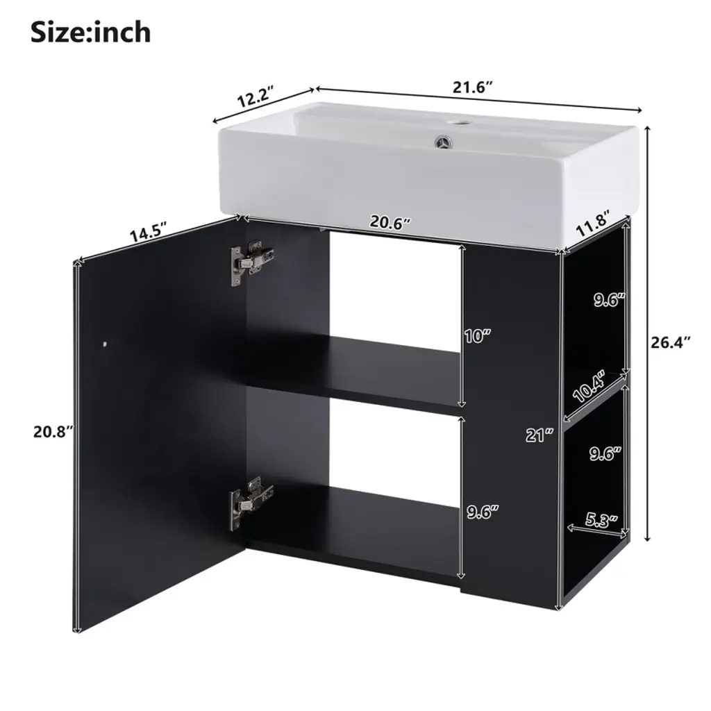 Mayeerty 21.6 Inch Modern Floating Bathroom Vanity With Ceramic Basin - Perfect For Small Bathrooms, Right Side Storage