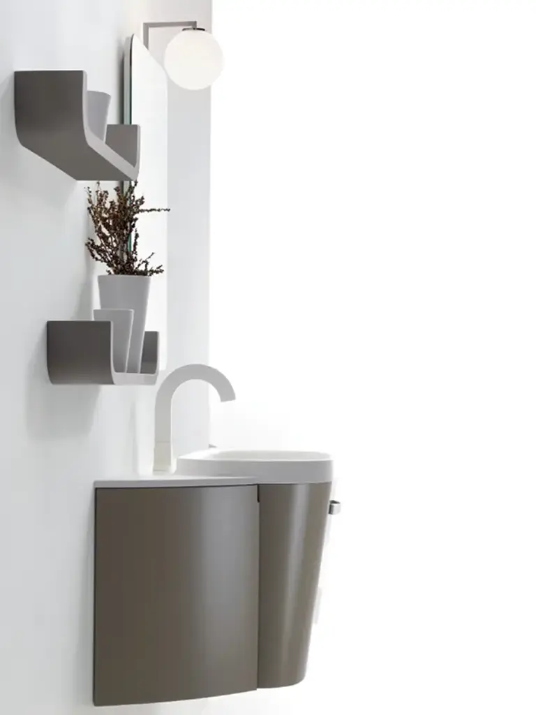 METROPOLIS 07 by Lasa Idea is a washbasin cabinet.Finish: M92 stone matt lacquer - Top: matt TecnorilMetropolis, a collection based on the contemporary architecture, on rigorous volumes, with alternation of full and empty ones , played by natural tonalities, refined chromatisms or purity of absolute white. In addition to the new Metropolis washbasin top made of matt or gloss Tecnoril, the collection also proposes a wide range of counter top washbasins made of ceramic or resin, incorporate washbasin tops made of crystal or Tecnoril, and tops made of wood, marble or with lacquered finishes. Metropolis is characterised by extensive modularity and the possibility to work with suspended base units in different heights or units fitted with feet. The washbasin units are available in depths of 40 cm and 51 cm. 40 standard matt or gloss lacquered colours, also available on open-pore oak, as well as all the RAL lacquer shades make it possible to find the colour for every room. 20 different wood finishes are available on multilayer veneered with real wood.