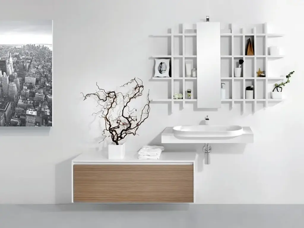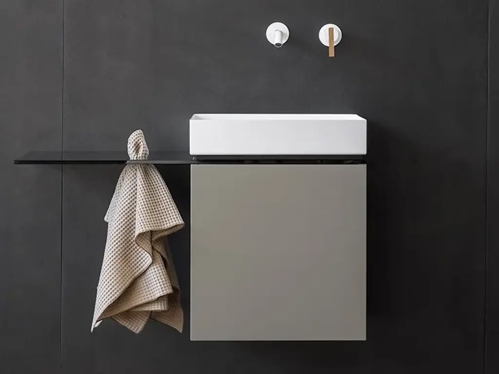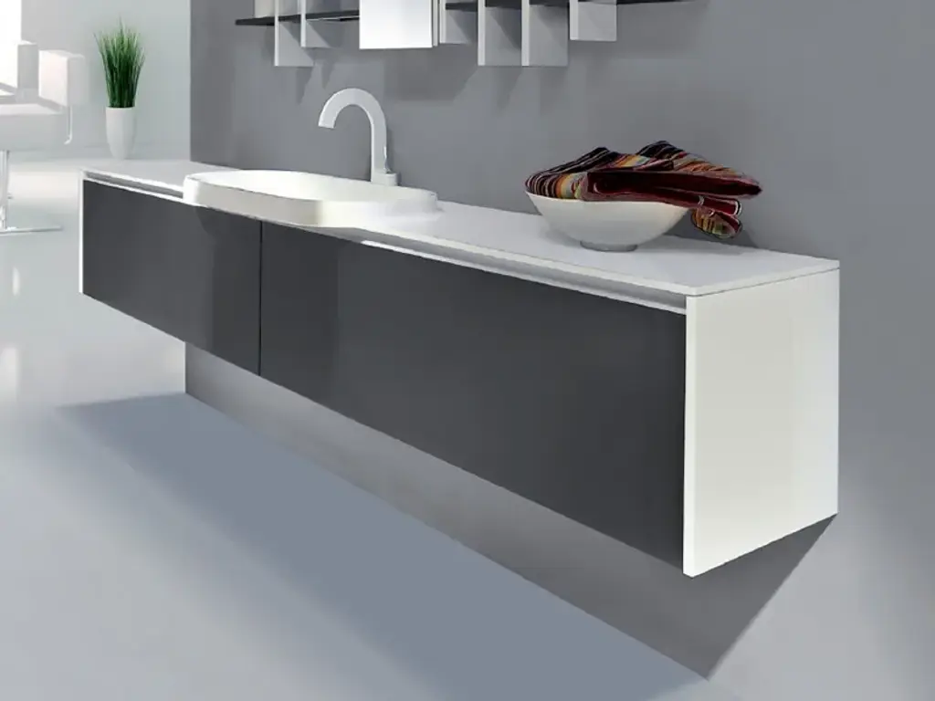 METROPOLIS 20 by Lasa Idea is a washbasin cabinet.Finish: matt white lacquered M86 - matt slate gray M89 - matt Tecnoril top.Metropolis, a collection based on the contemporary architecture, on rigorous volumes, with alternation of full and empty ones , played by natural tonalities, refined chromatisms or purity of absolute white. In addition to the new Metropolis washbasin top made of matt or gloss Tecnoril, the collection also proposes a wide range of counter top washbasins made of ceramic or resin, incorporate washbasin tops made of crystal or Tecnoril, and tops made of wood, marble or with lacquered finishes. Metropolis is characterised by extensive modularity and the possibility to work with suspended base units in different heights or units fitted with feet. The washbasin units are available in depths of 40 cm and 51 cm. 40 standard matt or gloss lacquered colours, also available on open-pore oak, as well as all the RAL lacquer shades make it possible to find the colour for every room. 20 different wood finishes are available on multilayer veneered with real wood.