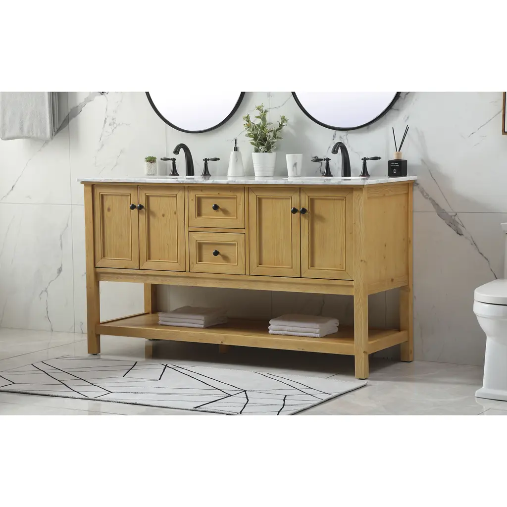 Metropolis 60 X 22 X 34 Inch Natural Wood Vanity Sink Set