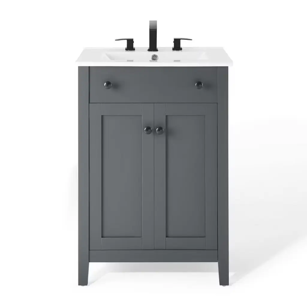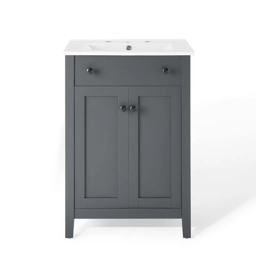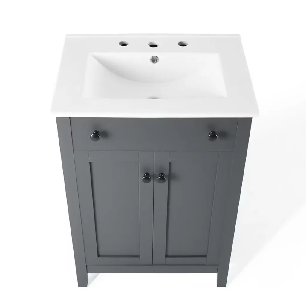 Modway Nantucket Bathroom Vanity Cabinet – 24" With White Sink, Gray – Compact Freestanding Vanity With Sink Top And Storage Drawer