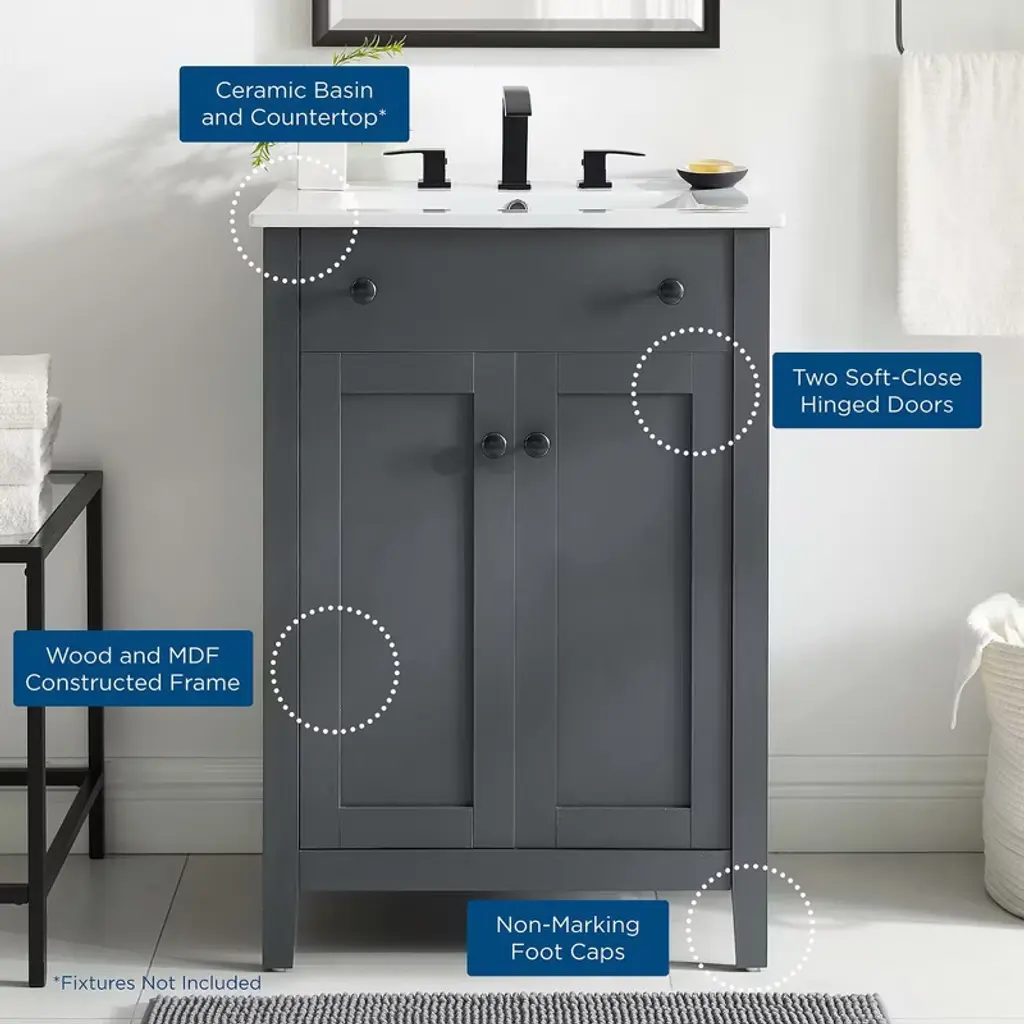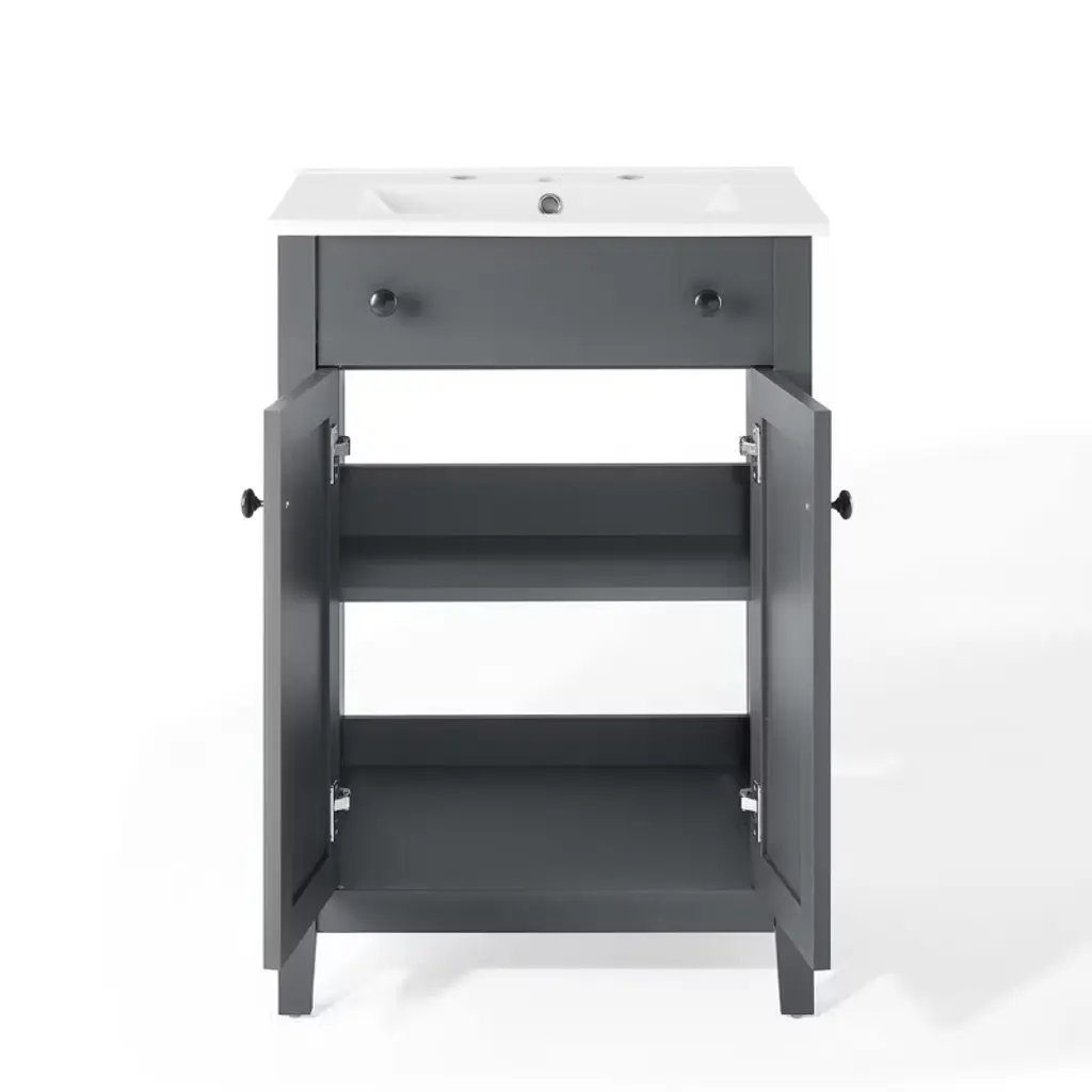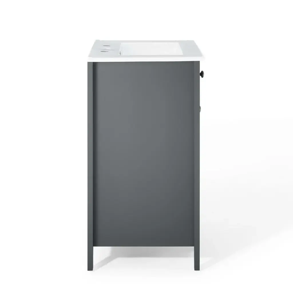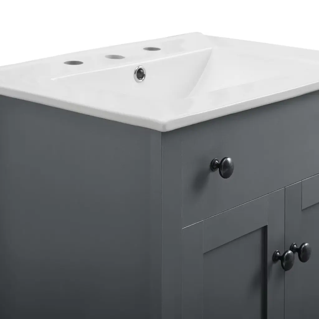 Modway Nantucket Bathroom Vanity Cabinet – 24" With White Sink, Gray – Compact Freestanding Vanity With Sink Top And Storage Drawer