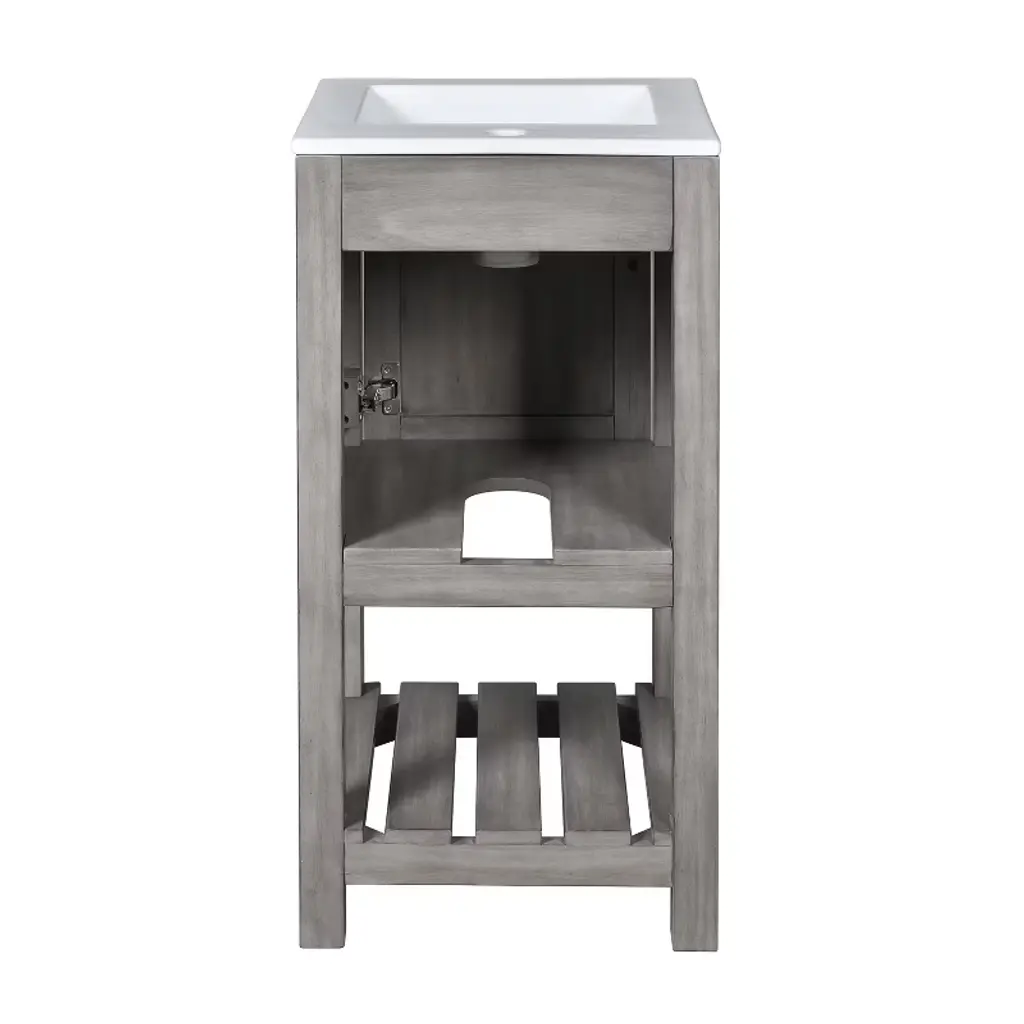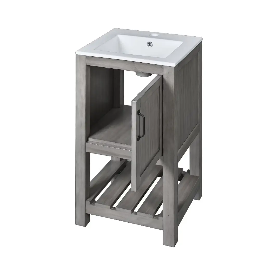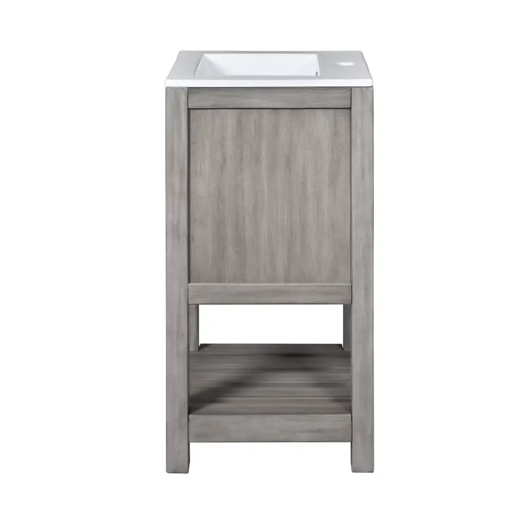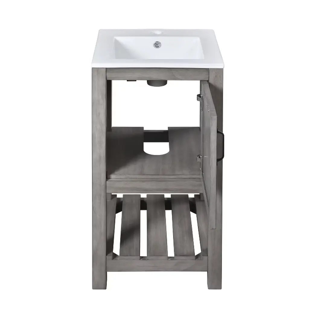 [Perfect for Small Spaces] This bathroom vanity is specially designed for small bathrooms. Its compact size saves space while still being practical. The simple style fits well with modern, Nordic, or rustic decor. The wood-grain finish adds a natural and stylish touch, making your bathroom feel warm and elegant. [High-Quality Material] The vanity features real wood veneer and a smooth painted finish, which is both stylish and water-resistant. It’s made with high-qualiy MDF boards for strength and durability, and comes with top-quality hardware for smooth operation. It’s designed to stay sturdy and look great for years. [Smart Storage] Despite its small size, this cabinet offers plenty of storage space. It has two levels- Closed cabinet: Perfect for storing toiletries and cleaning supplies, keeping them dust-free; open shelf: Great for towels and other items that need to stay dry and airy. The clever design helps you stay organized and makes the most of your space. [Ceramic Sink] The vanity comes with a glossy white ceramic sink that’s easy to clean and resistant to scratches and stains. It fits a standard 1.5-inch faucet (faucet not included) and includes an overflow hole to prevent water spills. It’s both functional and good-looking. [Easy to Assemble] The cabinet is designed for hassle-free installation. Each piece is labeled with numbers that match the step-by-step instructions. Even if you’re not a DIY expert, you can put it together quickly. All the necessary parts and tools are included, so you can start using it right away.