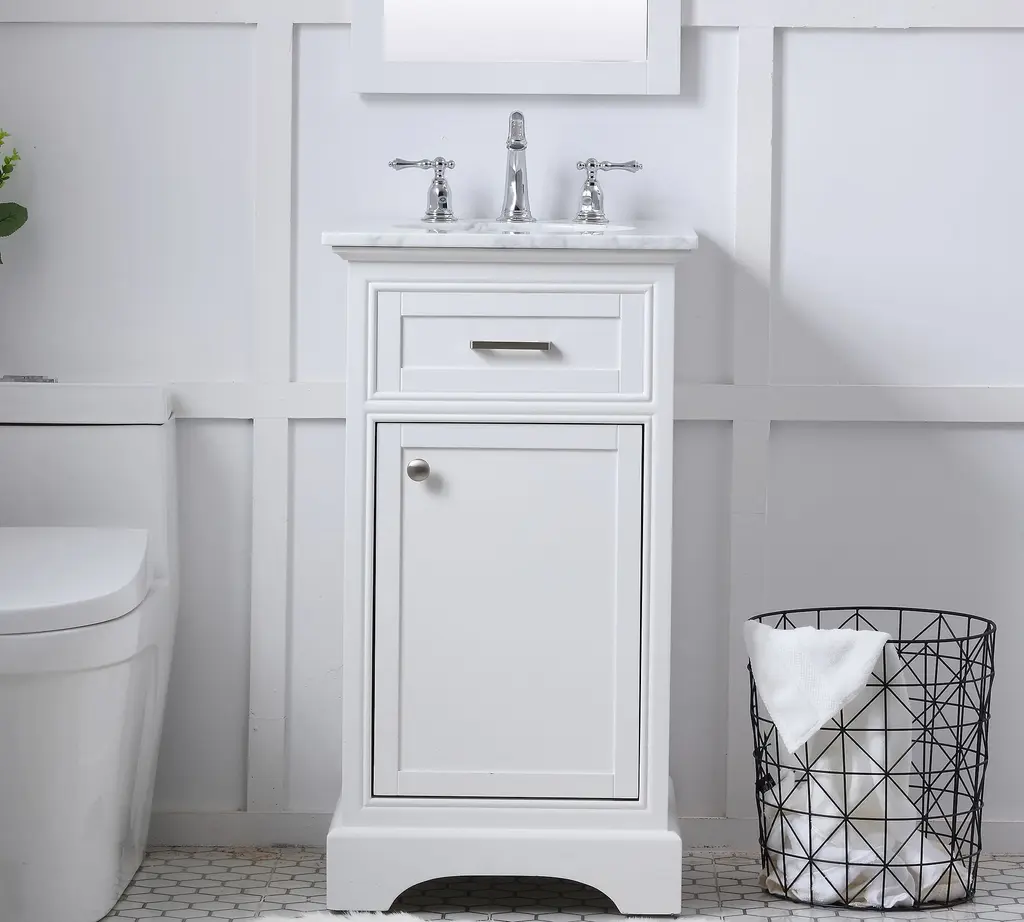 Product Introduction: This 20" Bathroom Vanity with Sink is a stylish and functional addition to any modern bathroom. Featuring a soft-closing door, two-tier storage rack, and an adjustable shelf, this freestanding vanity offers ample storage for your bathroom essentials. Crafted with durable MDF and ceramic materials, this vanity ensures long-lasting performance with easy maintenance. Product Features: - Durable Construction: Made from MDF and real wood, this vanity offers enhanced stability and durability. The painted finish makes it resistant to water and stains while also being easy to clean. - Ceramic Sink: The white ceramic sink comes with an integrated overflow and a single faucet hole, making it easy to maintain its smooth surface and shine. (Faucet not included) - Ample Storage: This vanity features generous storage options, including one cabinet with a door, a two-tier storage rack on the door, and an adjustable shelf. Perfect for organizing soaps, towels, shampoos, and other bathroom essentials, keeping them dust-free. - Thoughtful Design: The soft-closing door operates quietly, while the stainless steel door hinges and handles resist rust, ensuring long-term durability. The round door handle adds a modern touch and is smooth to the touch. - Assembly Required: This bathroom vanity comes with all necessary hardware and instructions for easy assembly. Specifications: - Overall Dimensions: 20"L x 18"W x 34"H (72.75 lbs) - Cabinet Base: 19"L x 17.1"W x 33.41"H (47.4 lbs) - Sink Top: 20"L x 18"W x 4.5"H (25.35 lbs) - Material: MDF Board + Ceramic - Shape: Rectangular - Style: Modern - Finish: Painted Finish - Mounting Type: Freestanding - Number of Sinks: 1 (Single Sink) - Sink Type: Undermount / Drop-In - Vanity Top Edge Type: Flat - Edge Thickness: 0.59" - Sink Location: Center - Faucet Mount: Single Hole (not included) - Number of Doors: 1 - Number of Drawers: 0 - Capacity: 100 lbs - Assembly: Required (Hardware Included) Note: This 20" Bathroom Vanity offers both style and practicality. Its modern design, durable materials, and quiet soft-closing door make it a great choice for upgrading your bathroom. Assembly is required, but the vanity comes with all necessary hardware and instructions for quick and easy setup.