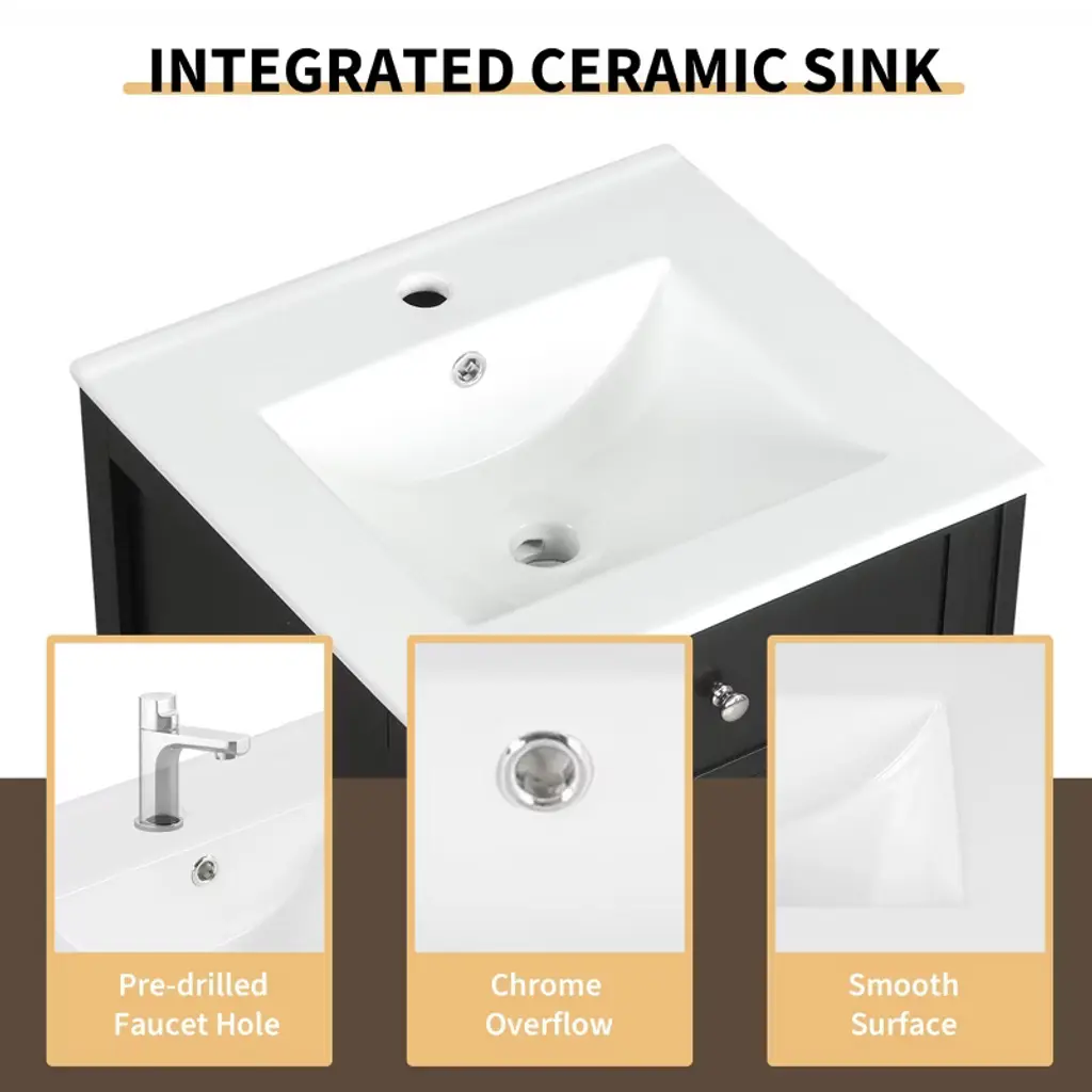 Mshliw 20" Bathroom Vanity With Ceramic Sink, Soft Closing Door, Storage Rack & Adjustable Shelve, Freestanding Mdf Cabinet(black)