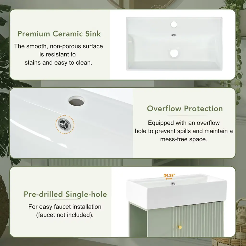 Mshliw 21.6" Wall-mounted Bathroom Vanity With Ceramic Sink, Soft-close Door, Left Storage, Modern Design(green)