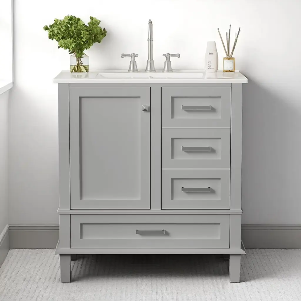 Mshliw 30 Inch Bathroom Vanity With Ceramic Sink, Modern Freestanding Cabinet With 3 Drawers And 1 Soft Close Door, Solid Wood Frame Storage(gray)