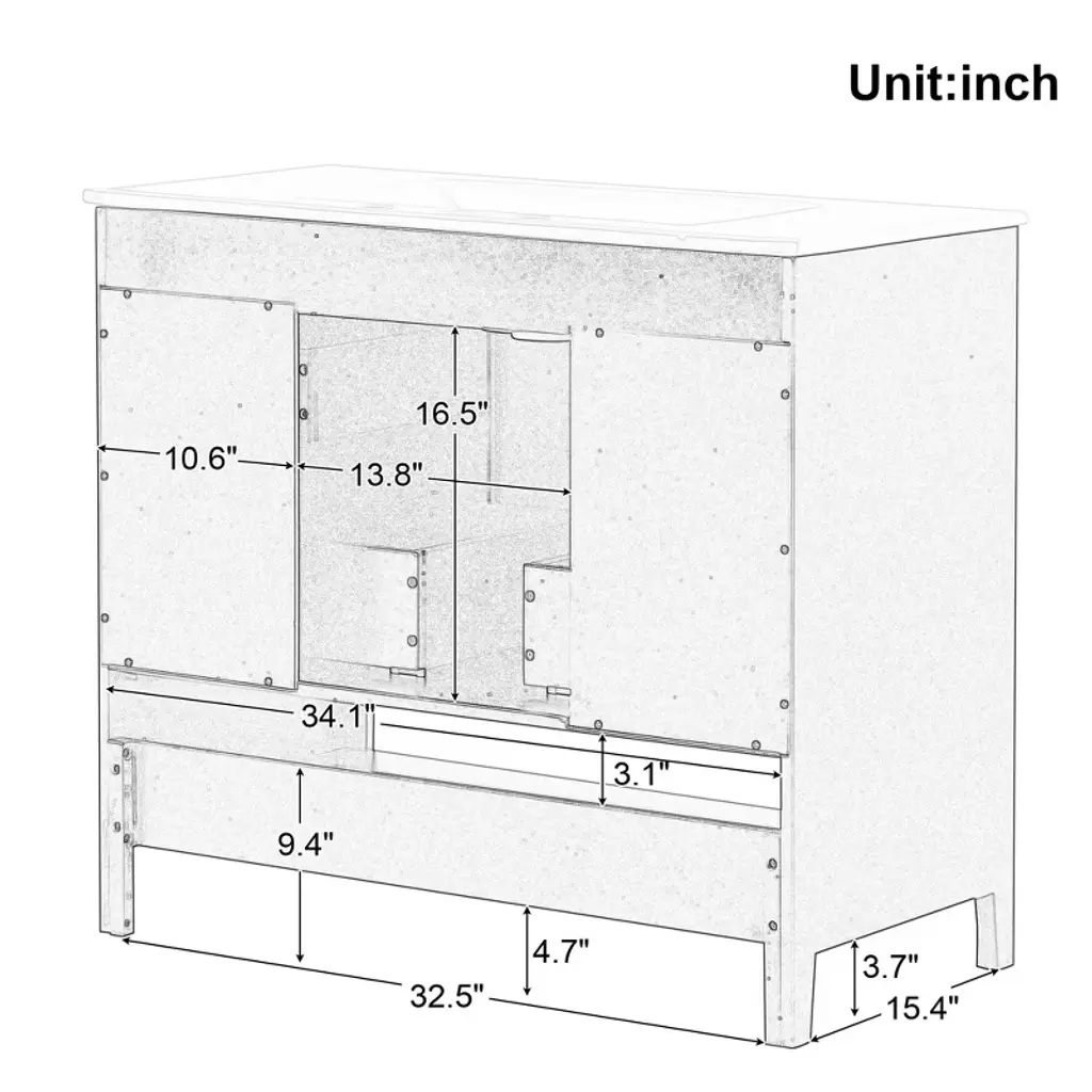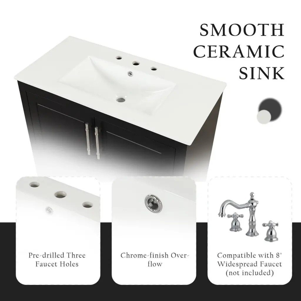 Mshliw 36 Inch Bathroom Vanity With Sink, Freestanding Cabinet With Doors And Drawers, Mdf Frame And Ceramic Top