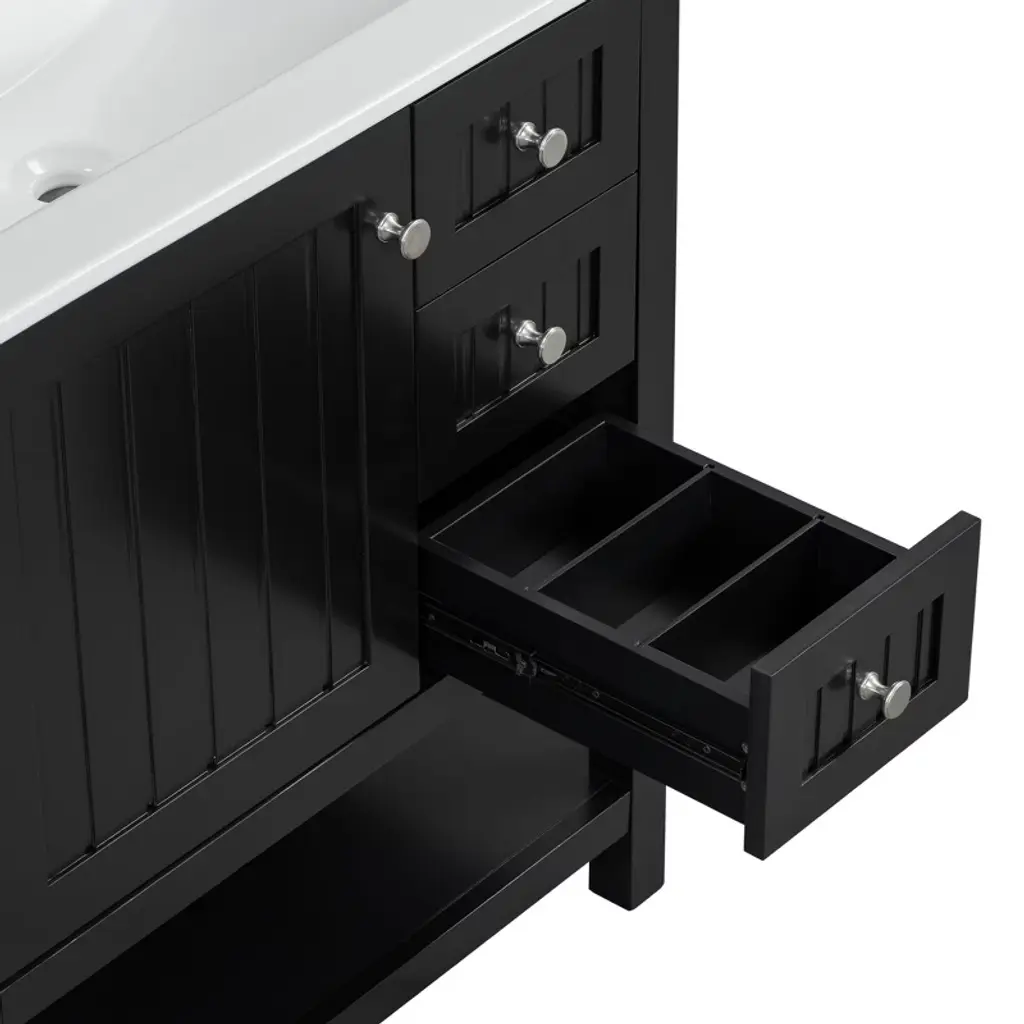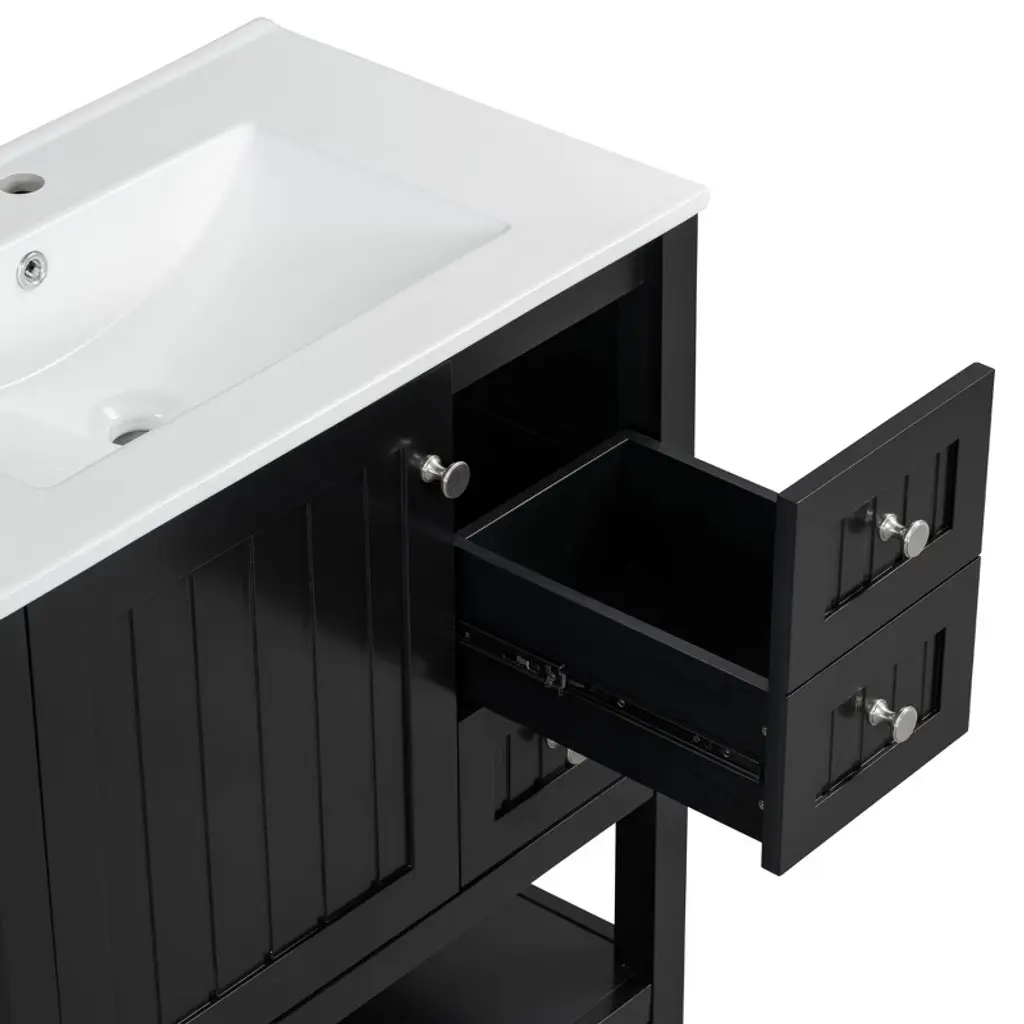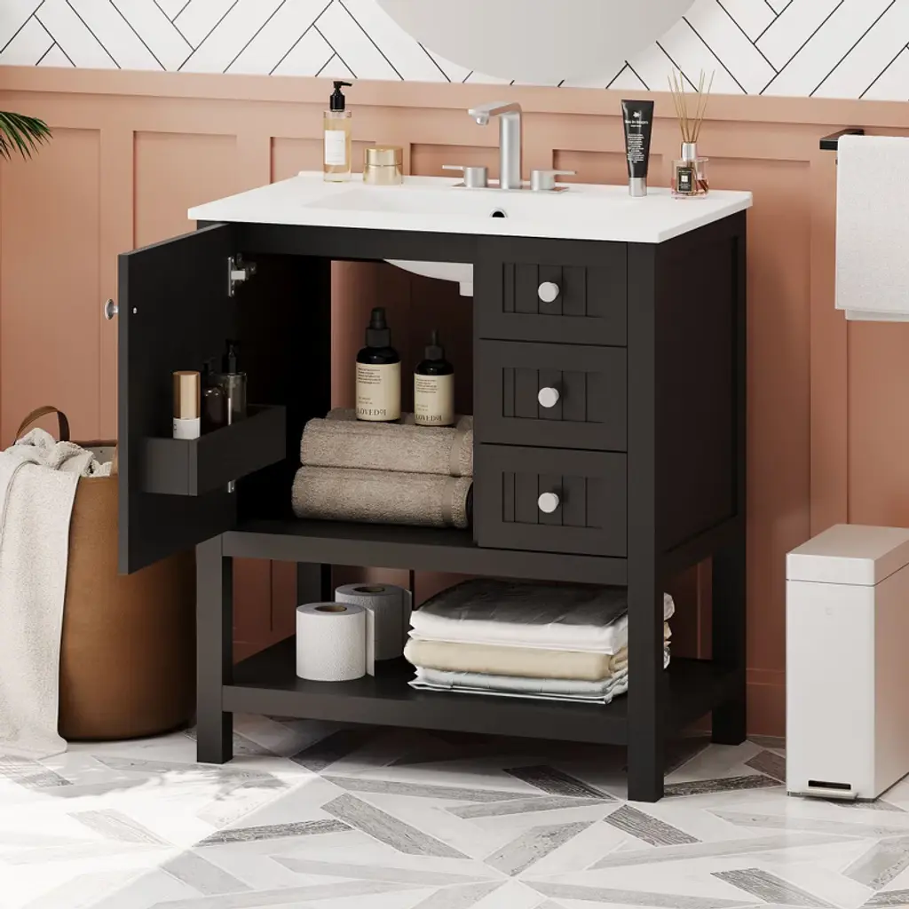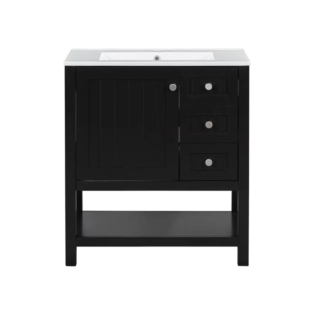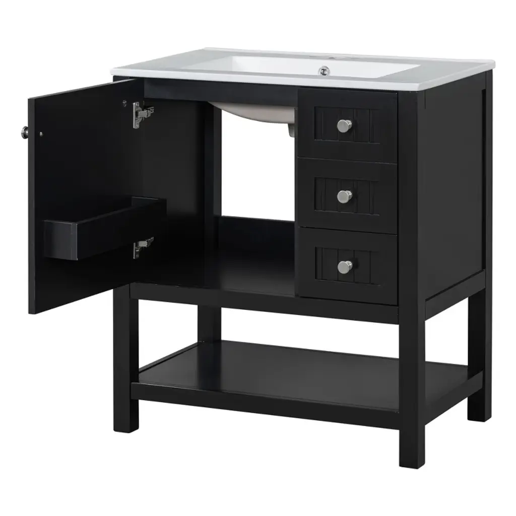 Okak 30" Vintage Style Bathroom Vanity With Sink, Freestanding Bathroom Painted Finish Sink Vanities With Soft Closing Door & Open Shelves, Black