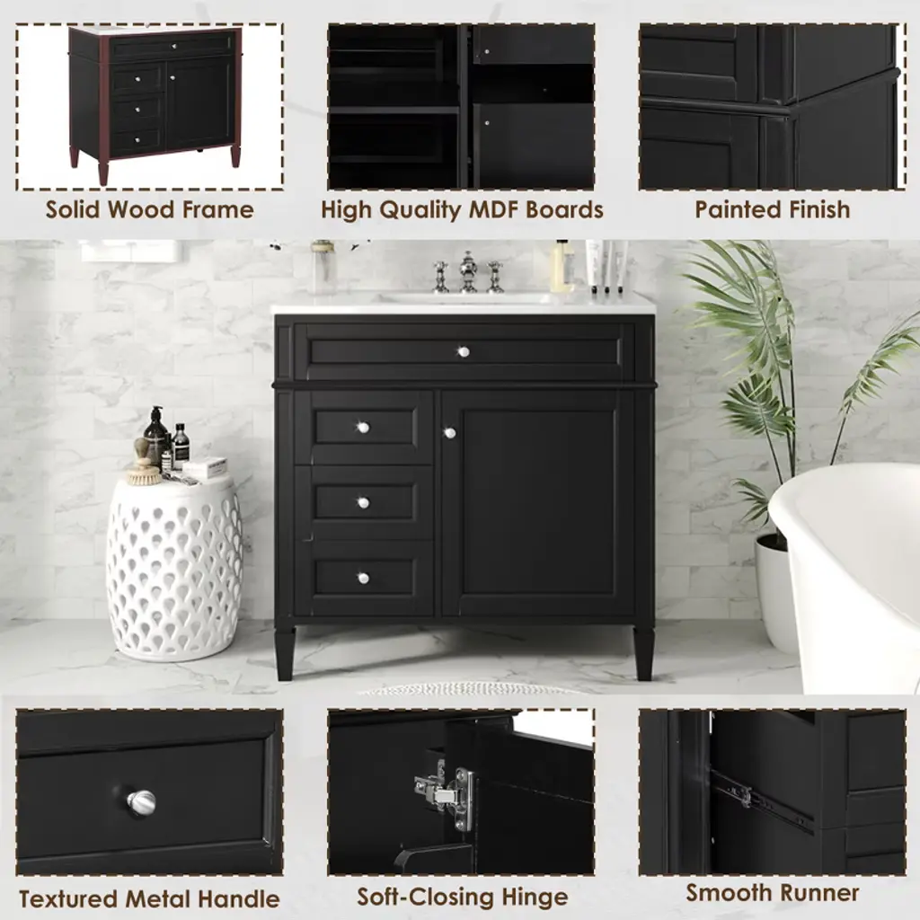 Okak Modern Freestanding Bathroom Vanity With Sink Combo,solid Wood Bathroom Storage Cabinet With 2 Drawers & Tip-out Drawer,black