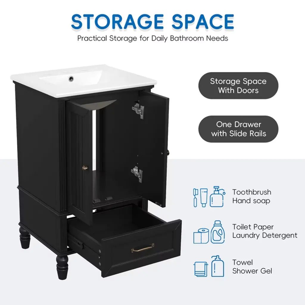 Orrd 20" Bathroom Vanity With Sink – Black Cabinet With Drawer & 2 Doors