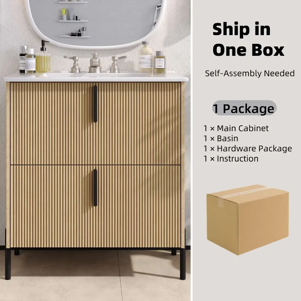 Upgrade your bathroom with the ORRD 30-inch vanity, combining natural charm with modern functionality. Featuring a fluted front design and a smooth ceramic sink, this vanity adds textural elegance to any space. The full-extension drawers with soft-close undermount slides offer ample storage and a quiet, seamless user experience. Crafted in a warm natural finish, it’s a perfect blend of beauty and practicality for contemporary bathrooms.