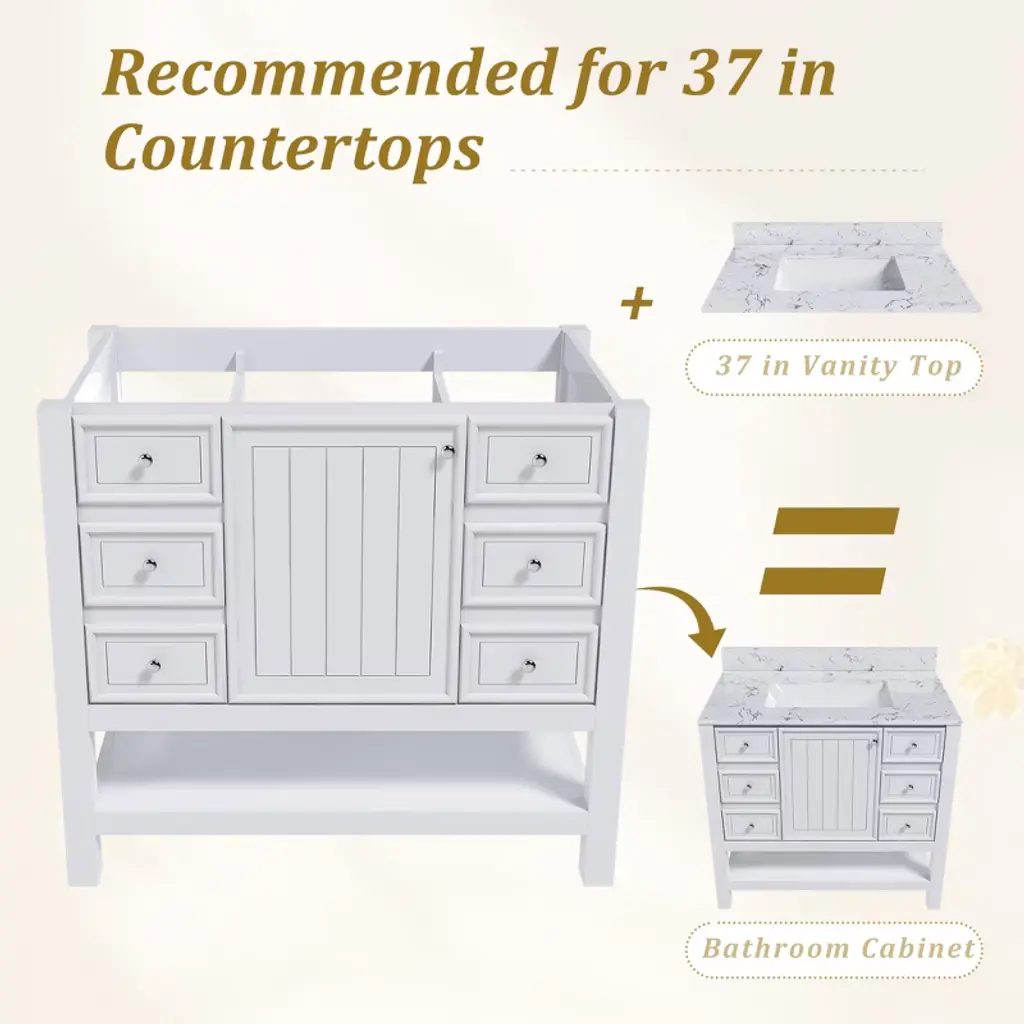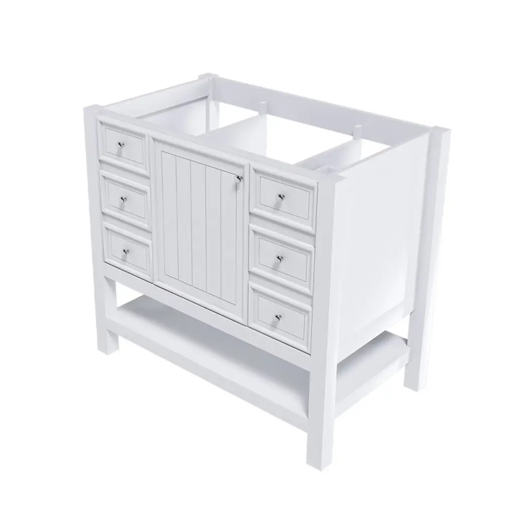 Orrd 36" Bathroom Vanity Without Sink, Solid Wood Frame, 1 Cabinet & 3 Drawers, White Finish
