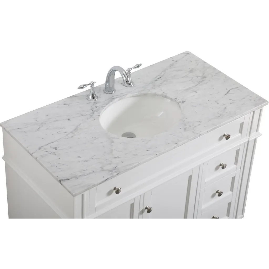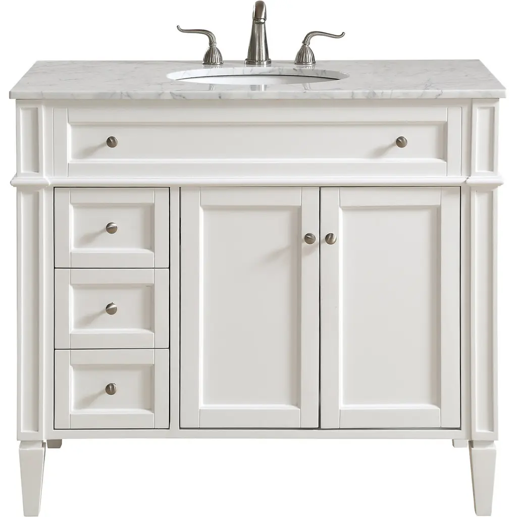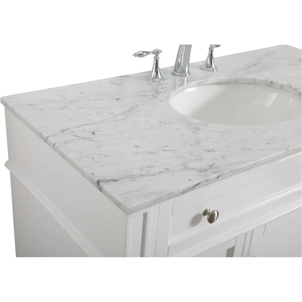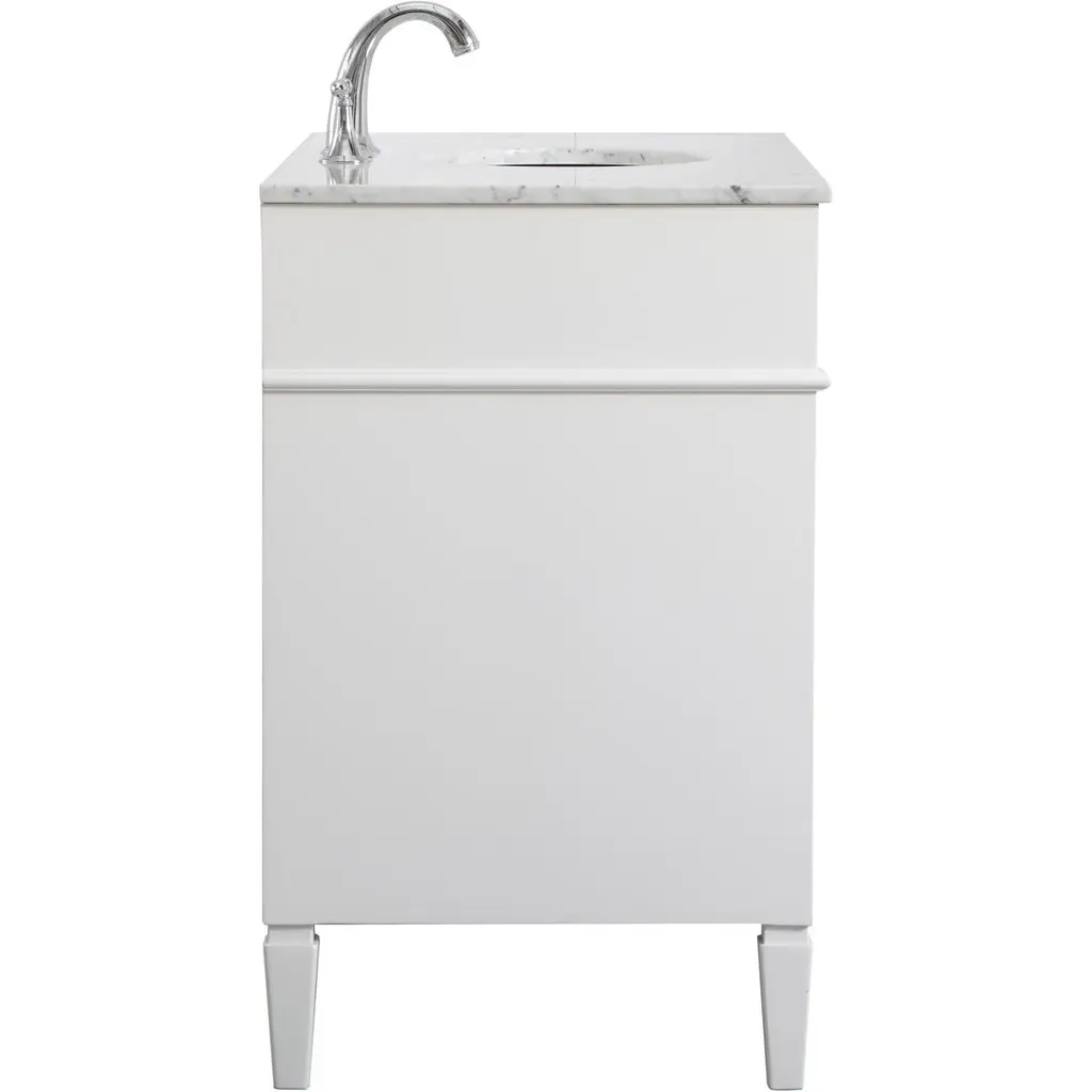 From its carrara white marble top to its contemporary style handpainted cabinet, it is sure to update your bathroom. Beneath its lustrous, natural stone marble top is an oval, white porcelain under-mount sink, removable shelf, for storing all your bathroom essentials.