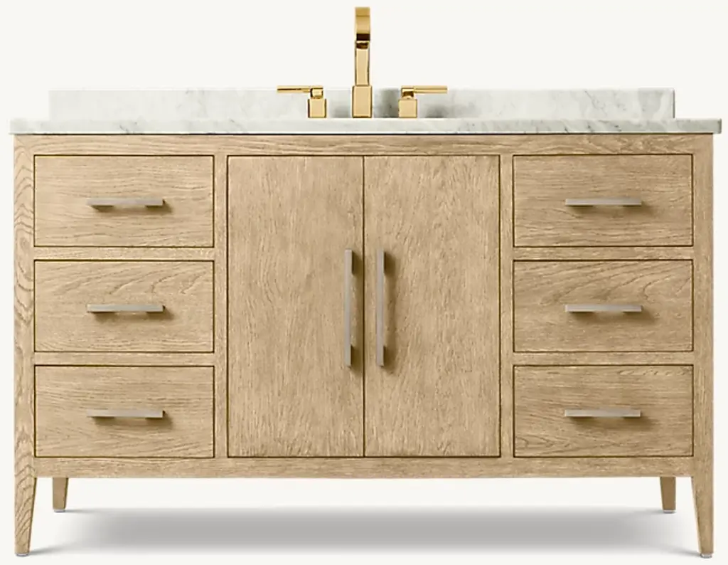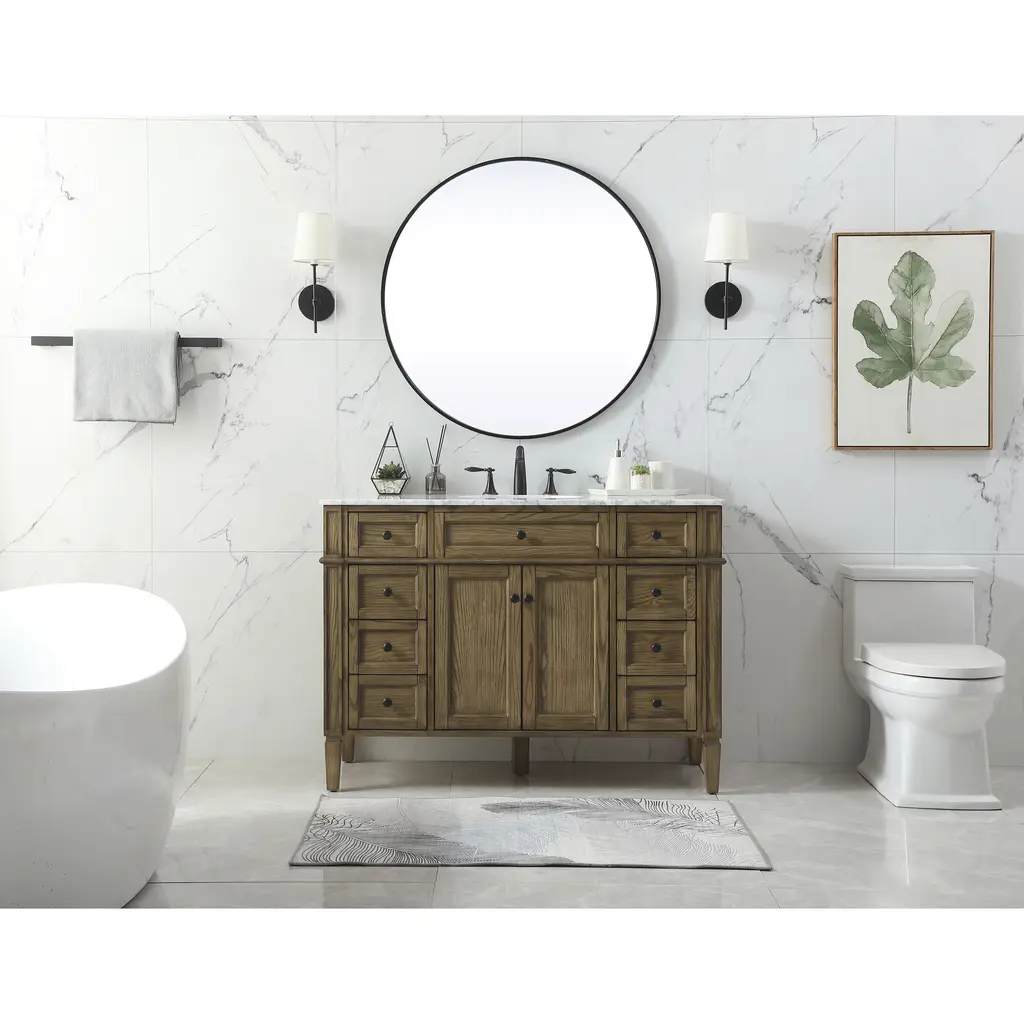 From its carrara white marble top to its handpainted cabinet, it is sure to make a splash in your bathroom. Beneath its natural stone marble top is a round white porcelain undermount sink. A removable shelf, for storing all your bathroom essentials. Convenient open back panel for hassle free installation access.