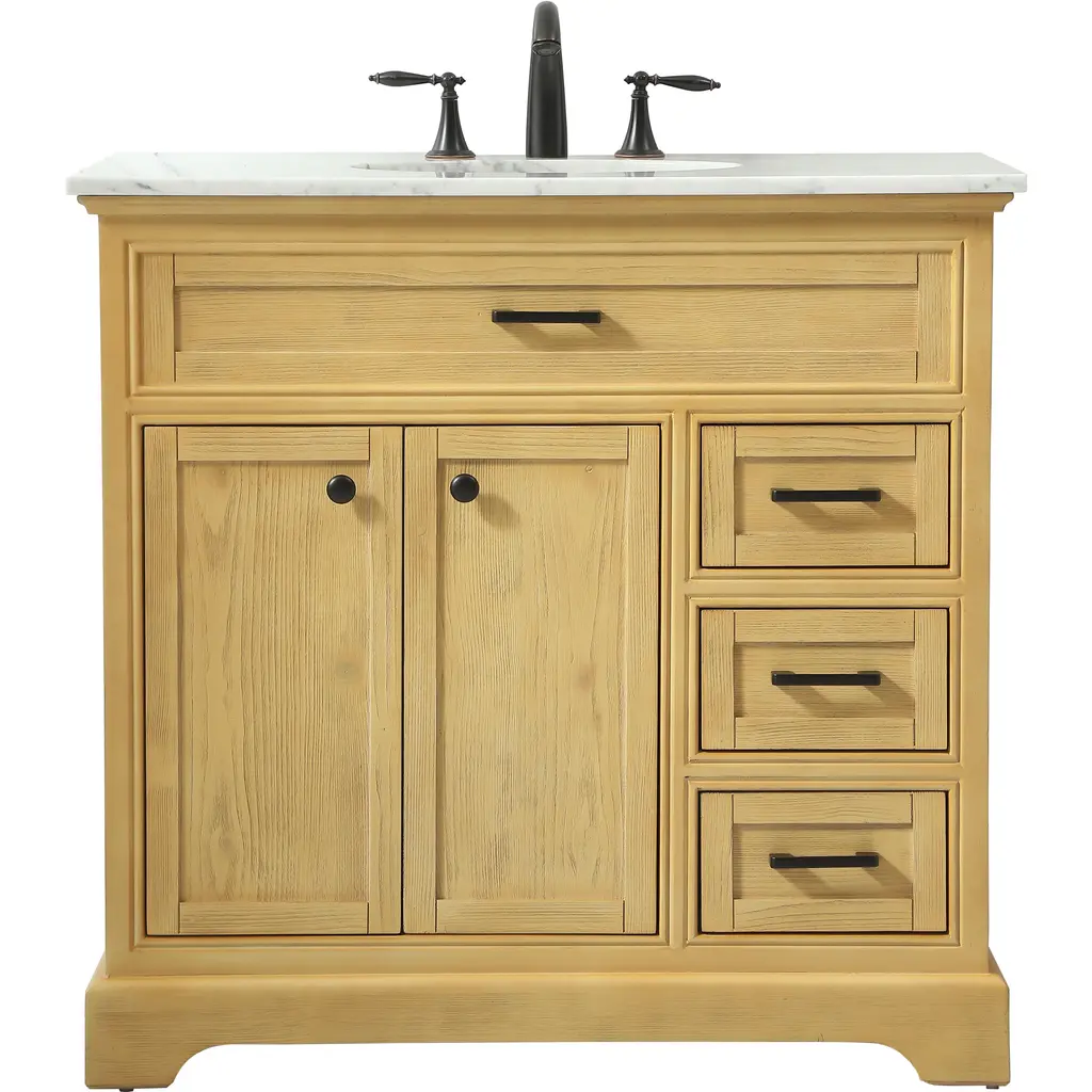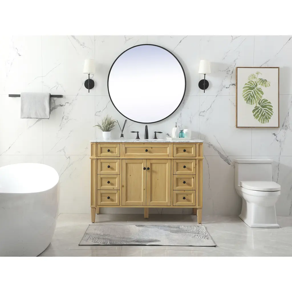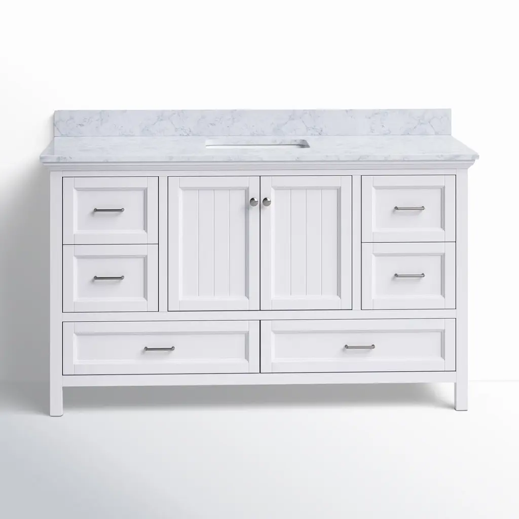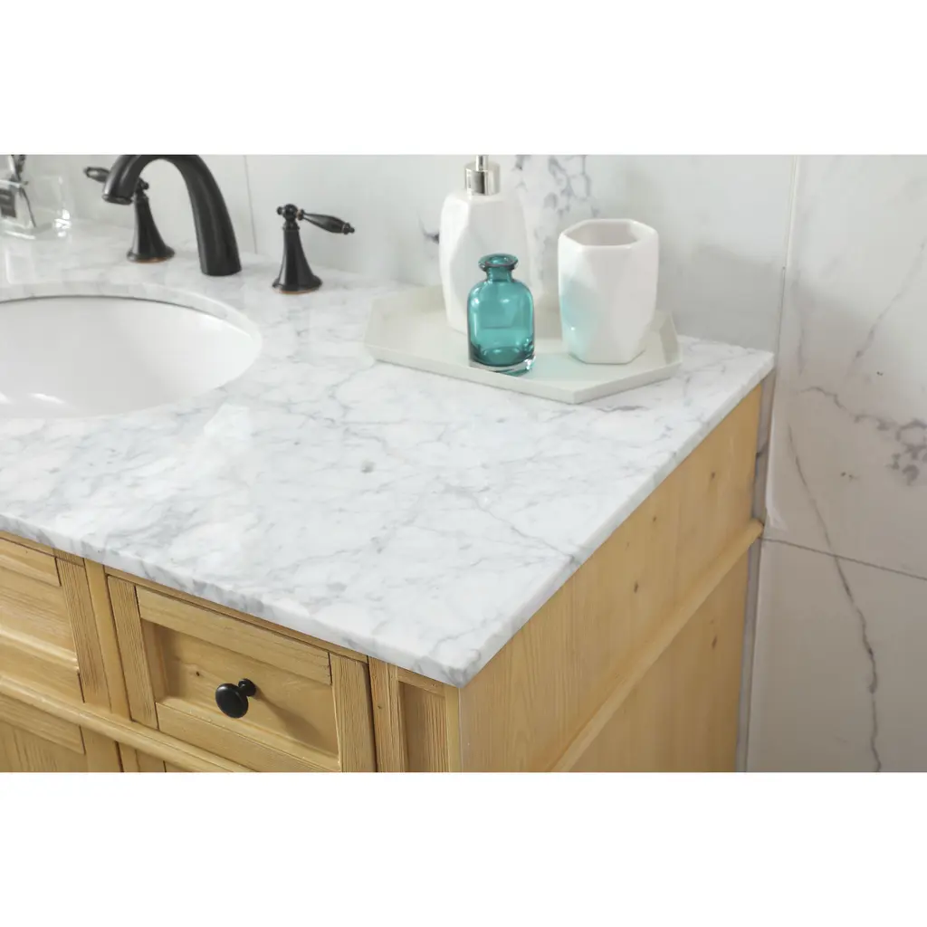 From its carrara white marble top to its handpainted cabinet, it is sure to make a splash in your bathroom. Beneath its natural stone marble top is a round white porcelain undermount sink. A removable shelf, for storing all your bathroom essentials. Convenient open back panel for hassle free installation access.