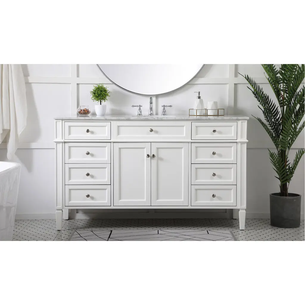 Park Avenue 60 X 22 X 35 Inch White Vanity Sink Set