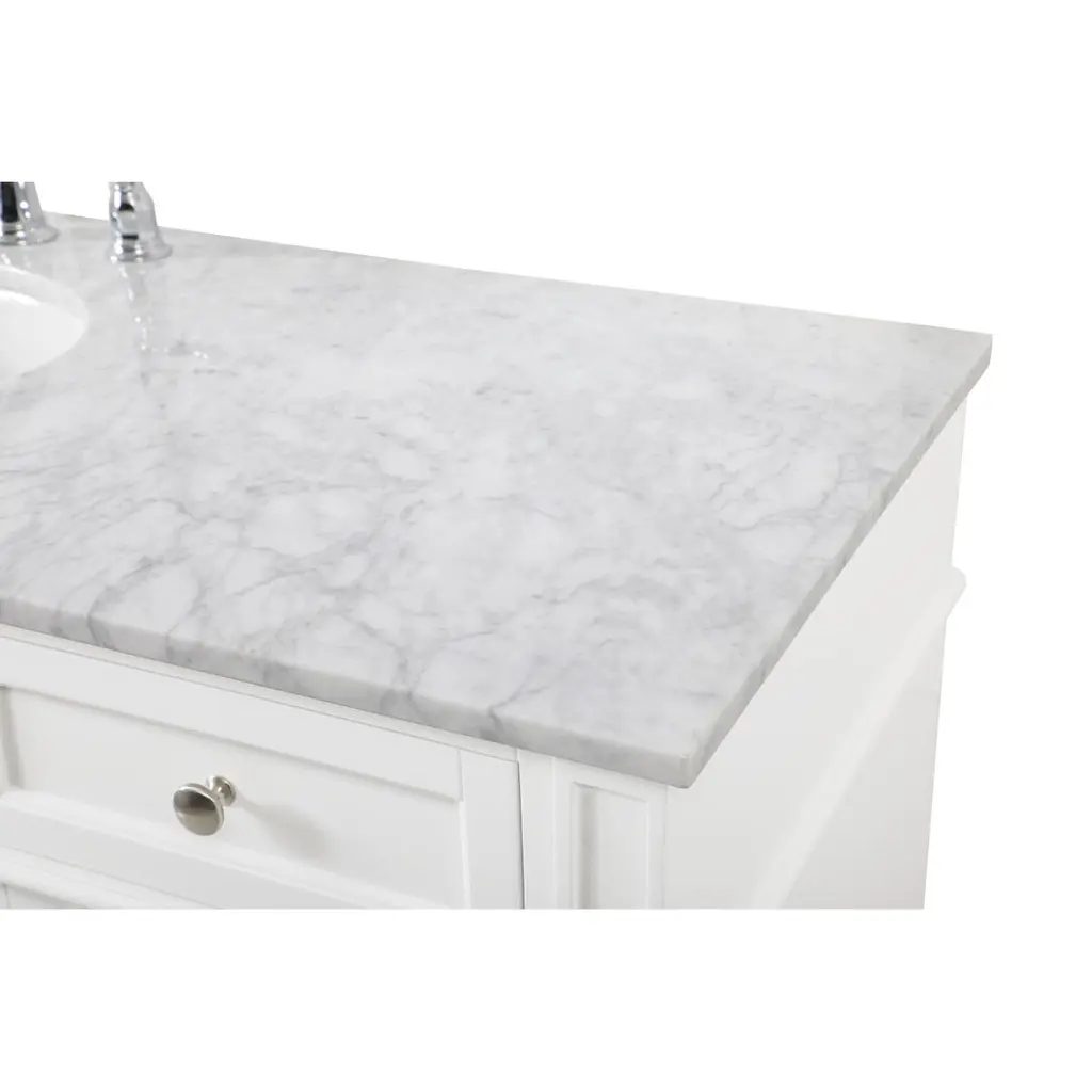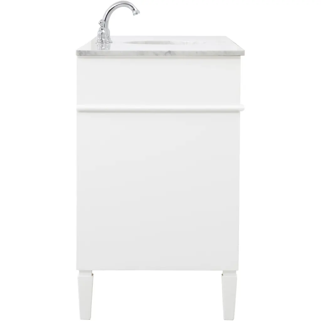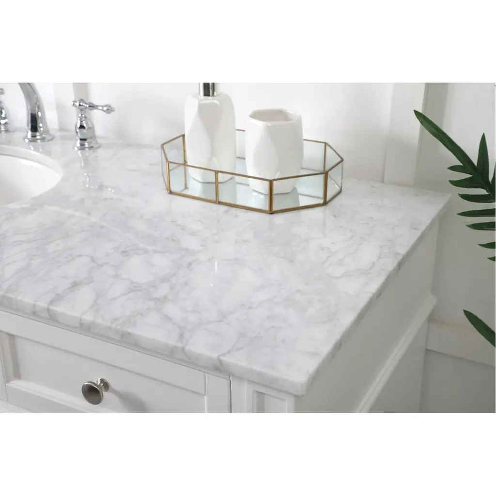 From its carrara white marble top to its contemporary style handpainted cabinet, it is sure to update your bathroom. Beneath its lustrous, natural stone marble top is an oval, white porcelain under-mount sink, removable shelf, for storing all your bathroom essentials.