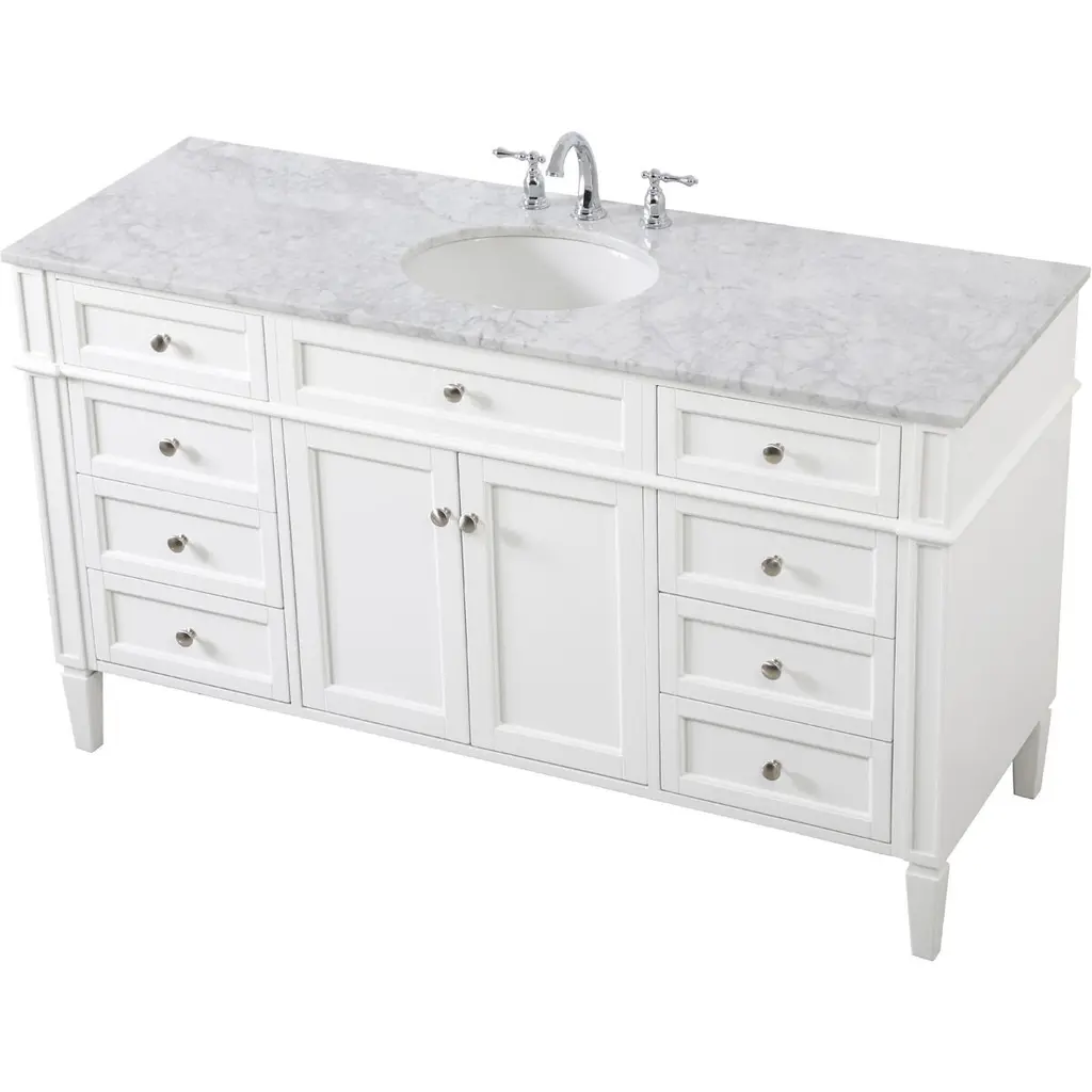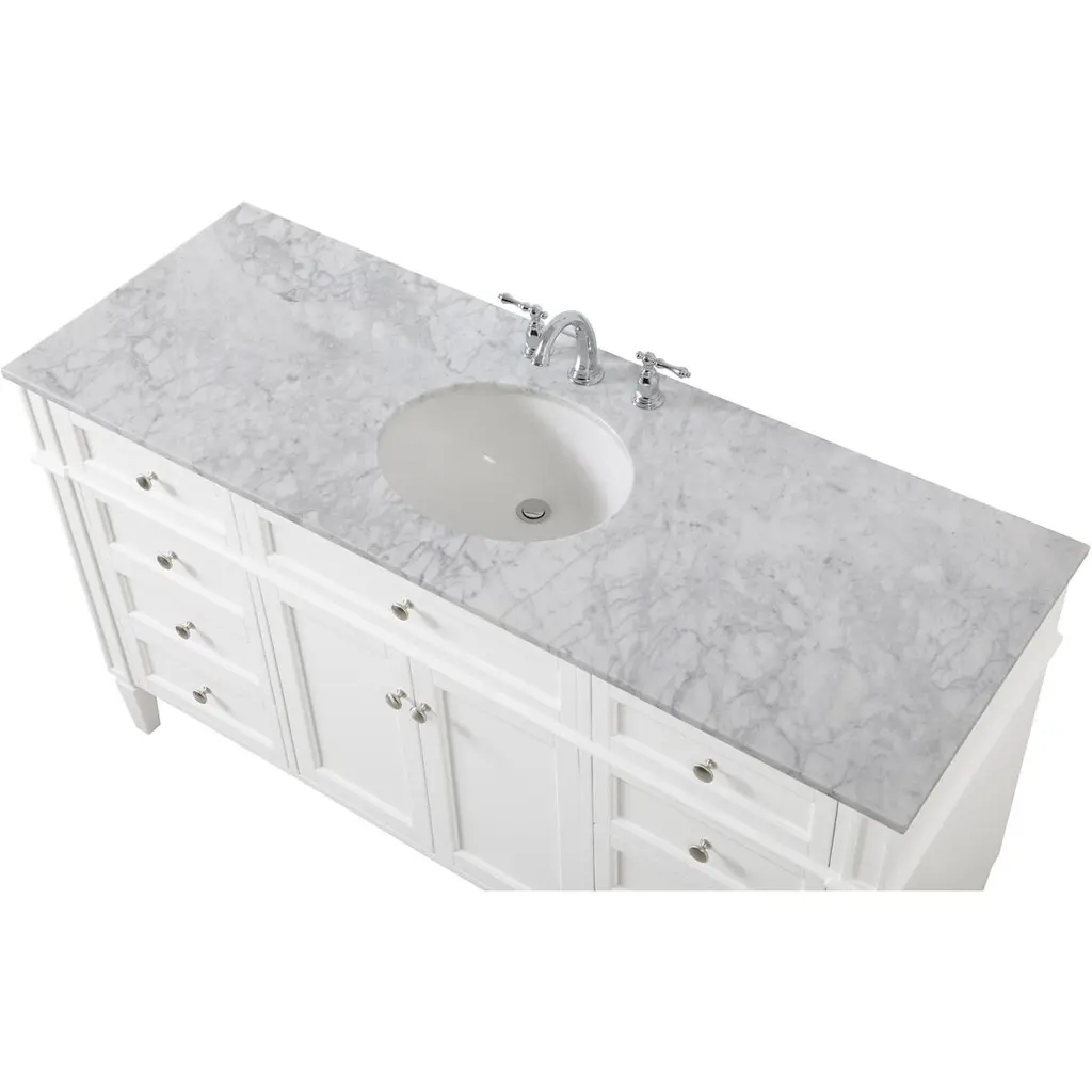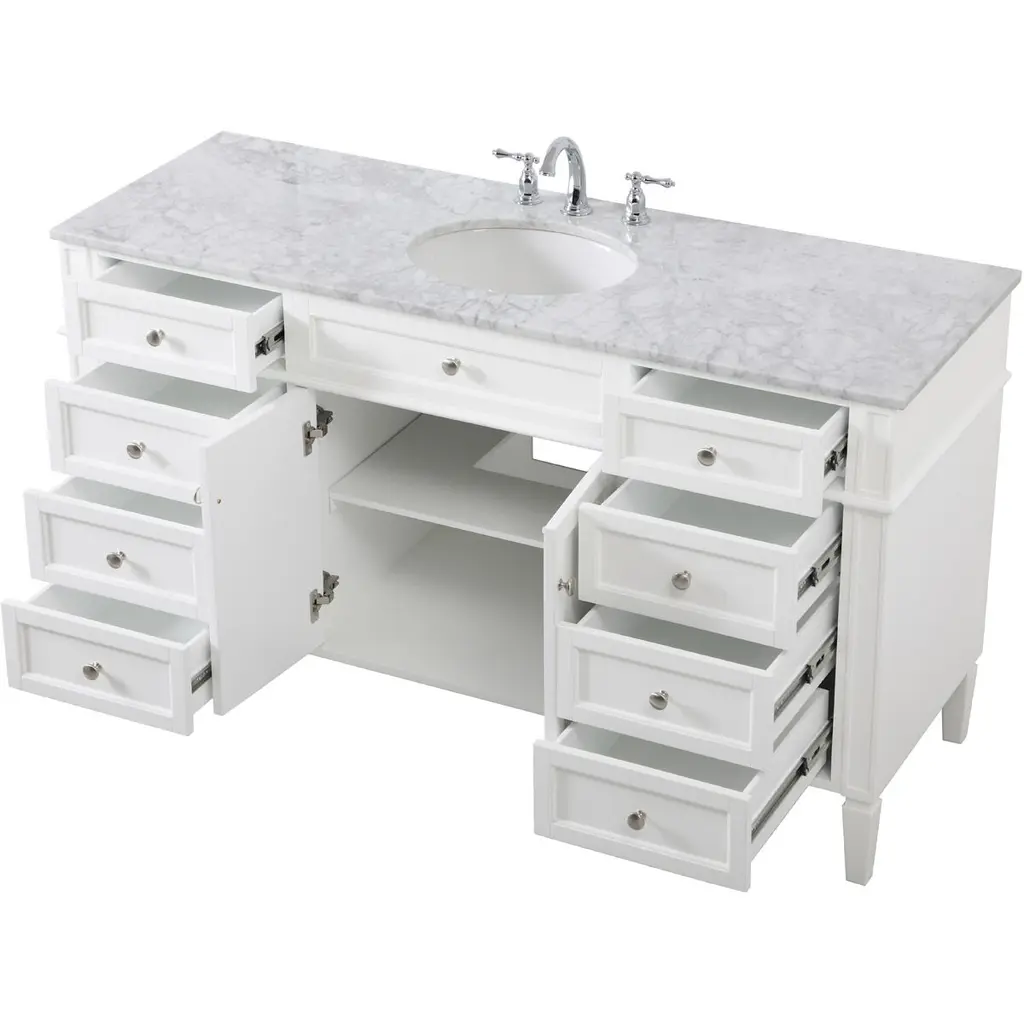 From its carrara white marble top to its contemporary style handpainted cabinet, it is sure to update your bathroom. Beneath its lustrous, natural stone marble top is an oval, white porcelain under-mount sink, removable shelf, for storing all your bathroom essentials.