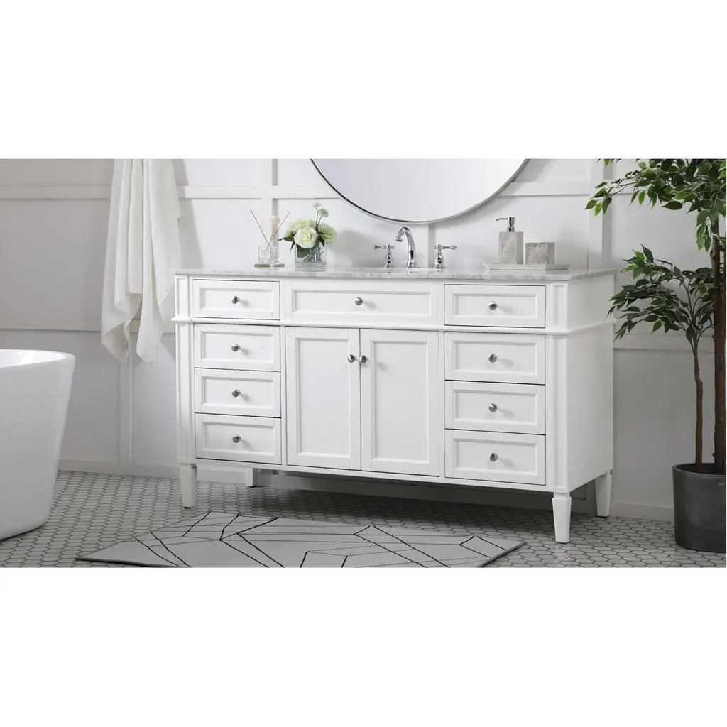 Park Avenue 60 X 22 X 35 Inch White Vanity Sink Set
