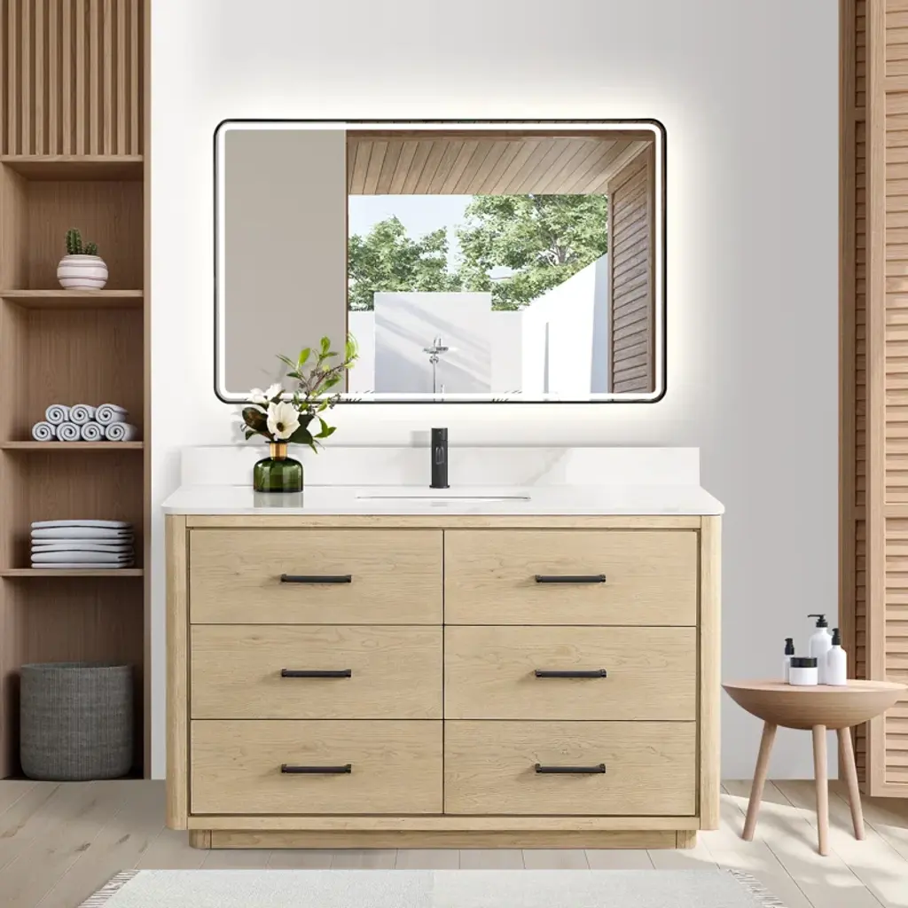 Transform your bathroom into a haven of style and sophistication with our Porto series freestanding bathroom vanity—a piece that embodies fine craftsmanship and everyday practicality. This exquisite vanity combines the textured warmth and elegance of solid oak with pristine white quartz, resulting in a look that’s both inviting and visually captivating. Deep dovetail drawers with partitions allow you to keep your essentials concealed and organized.