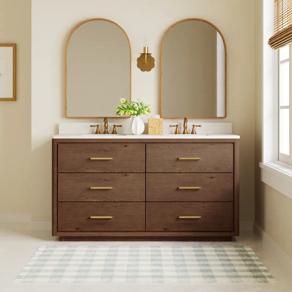 Transform your bathroom into a haven of style and sophistication with our Porto series freestanding bathroom vanity—a piece that embodies fine craftsmanship and everyday practicality. This exquisite vanity combines the textured warmth and elegance of solid oak with pristine white quartz, resulting in a look that’s both inviting and visually captivating. Deep dovetail drawers with partitions allow you to keep your essentials concealed and organized.
